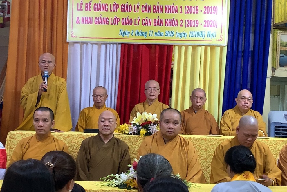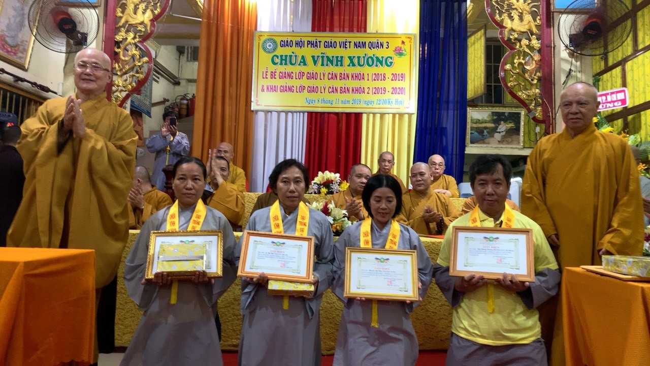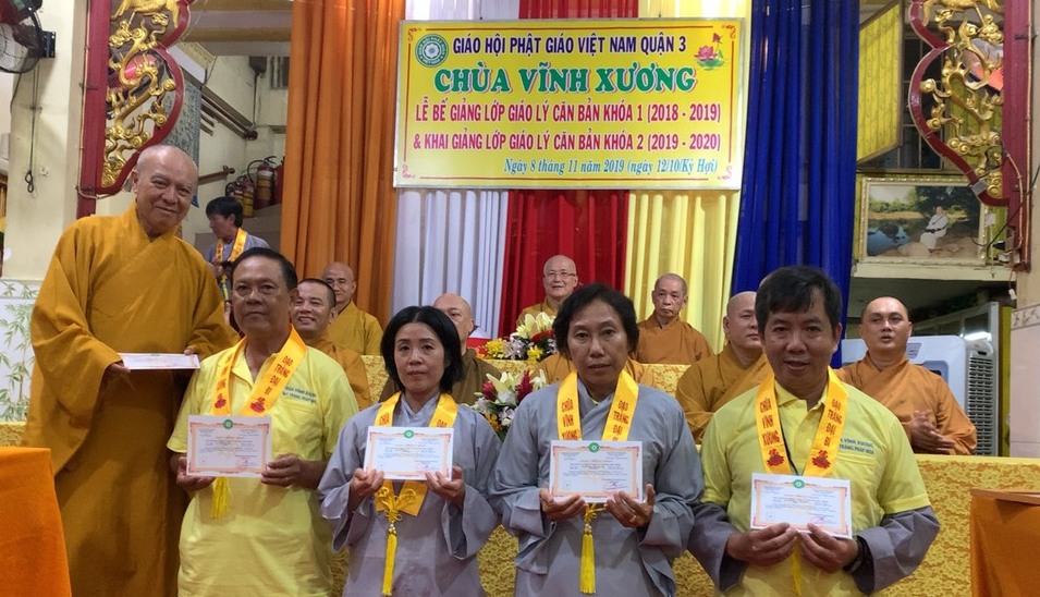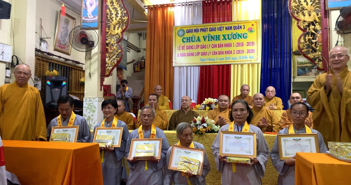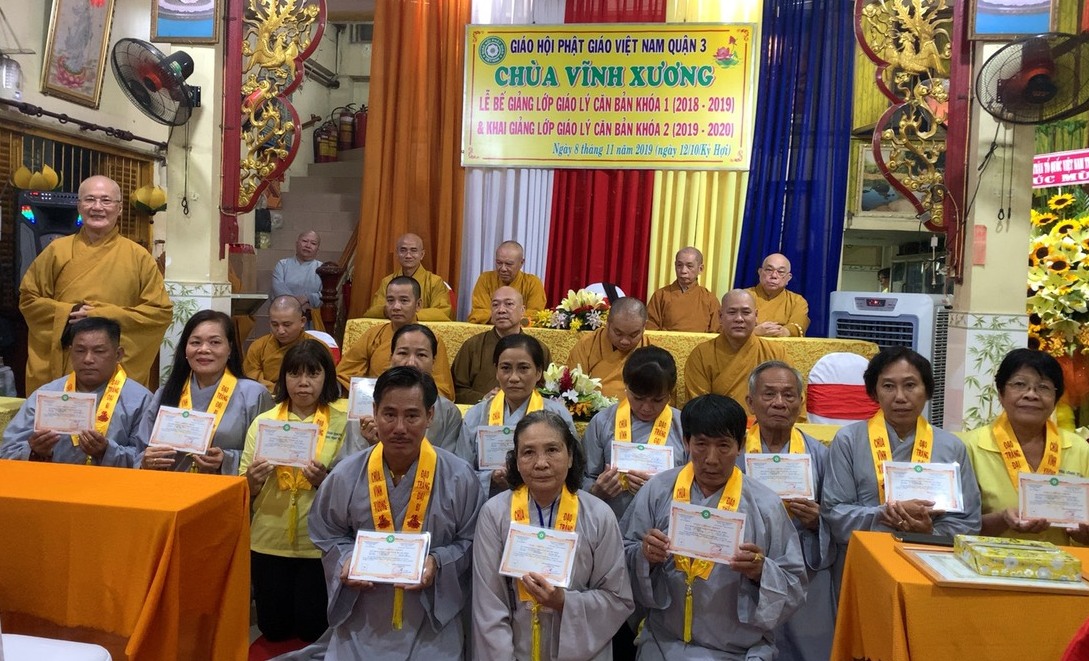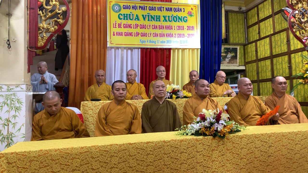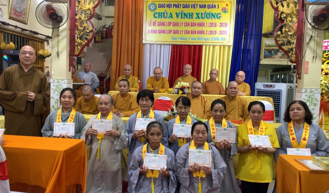 Ngày 08/11/2019 (nhằm ngày 12/10 năm Kỷ Hợi) tại chùa Vĩnh Xương, số 179 Trần Văn Đang P. 11, Q. 3, TP.HCM đã diễn ra lễ tổng kết lớp giáo lý căn bản khóa 1 và khai giảng khóa học mới.