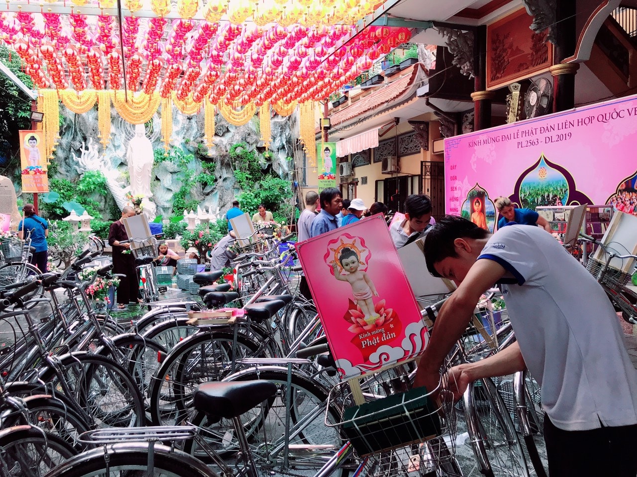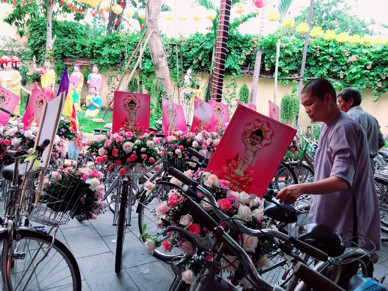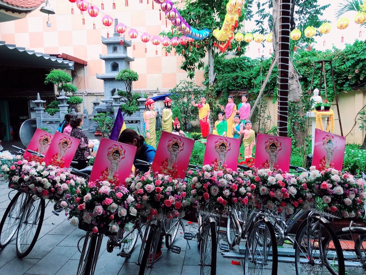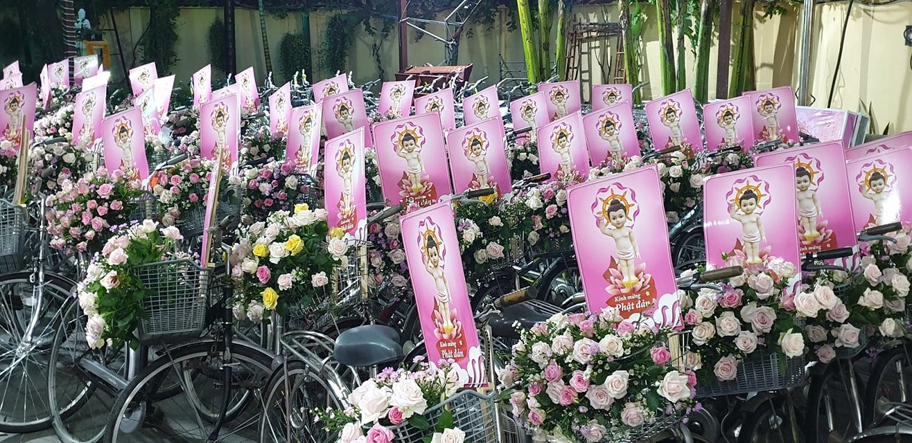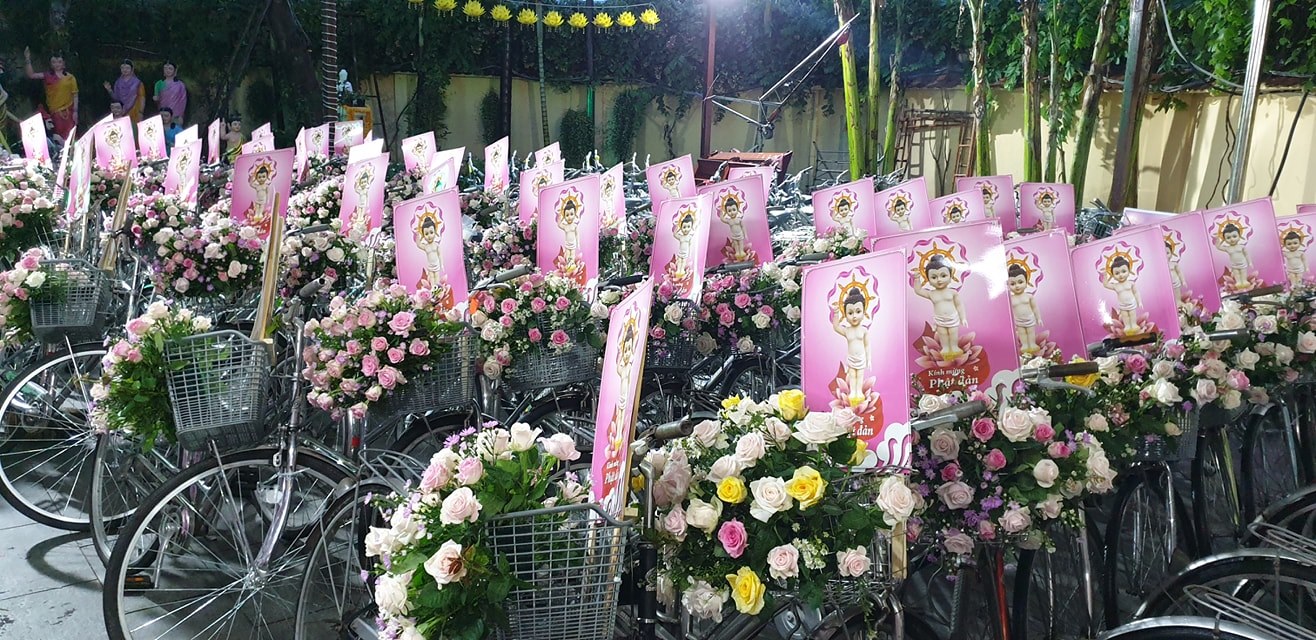 Buổi lễ diễu hành được các bạn trẻ háo hức tham gia. Chúng ta cũng xem lại những hình ảnh trang trí xe đạp hoa đặc sắc này tại Tu Viện Quan Âm.