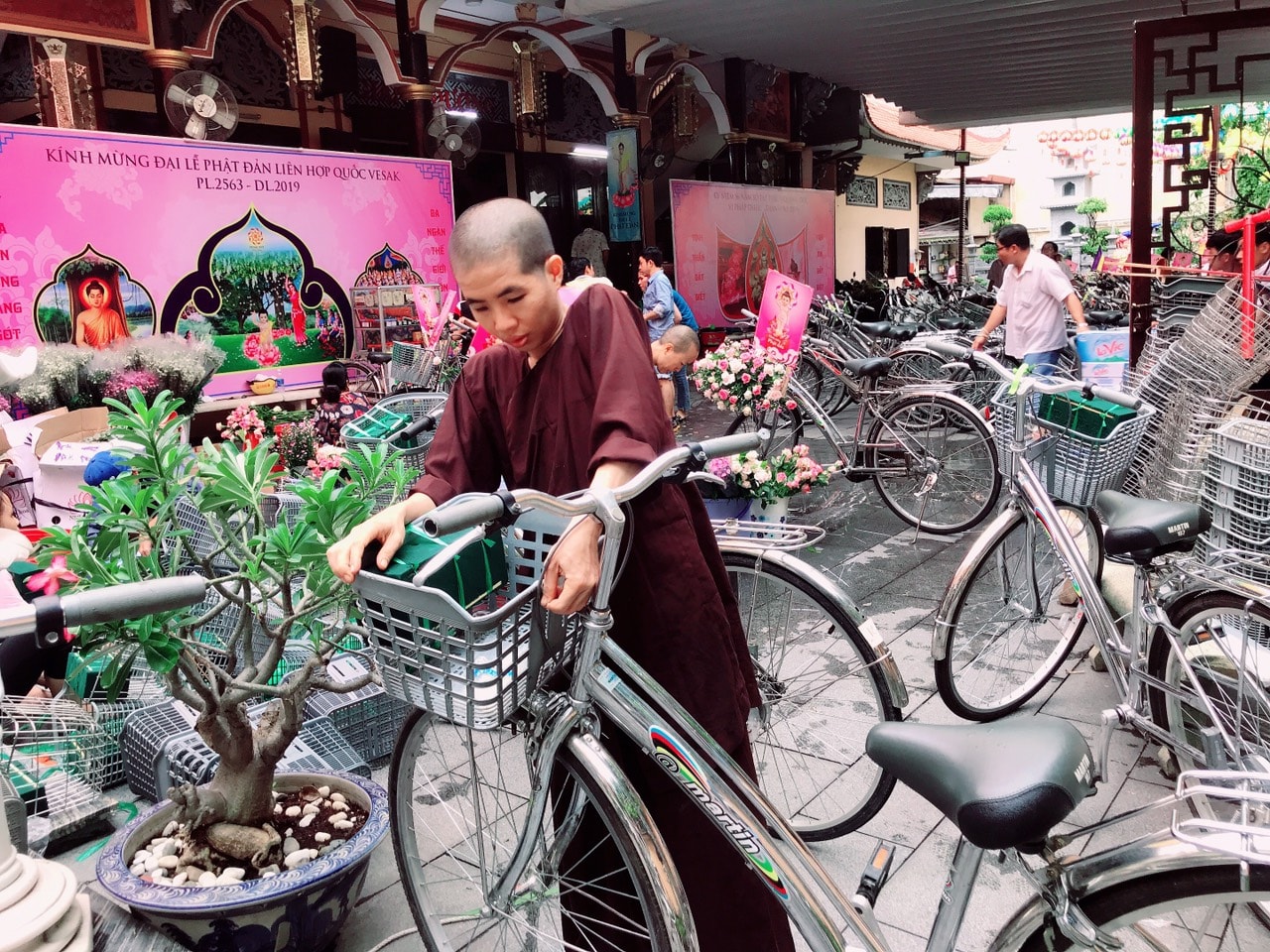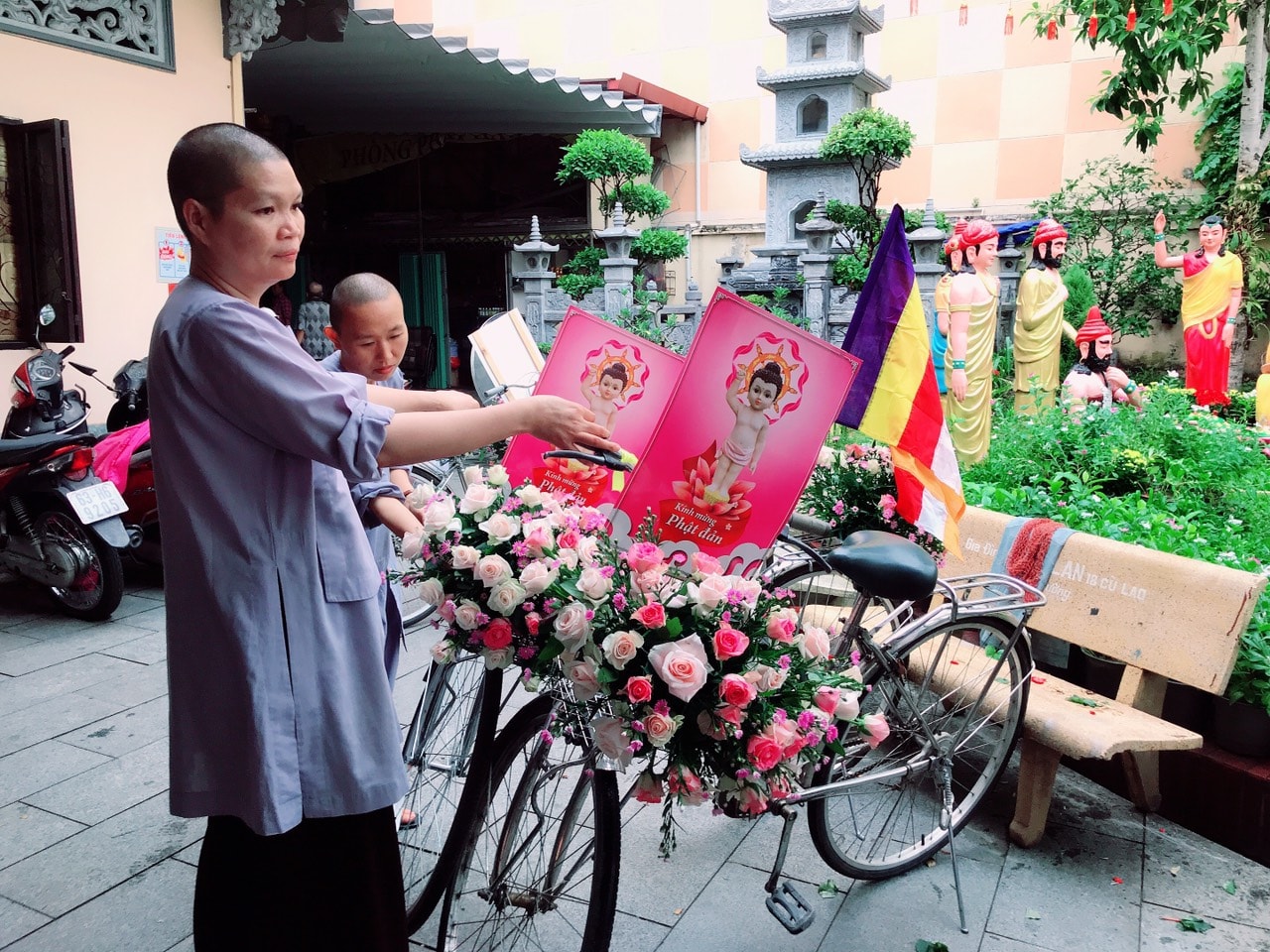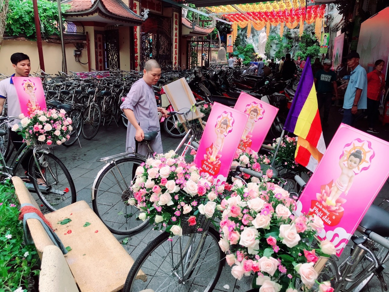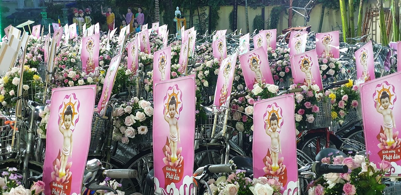Buổi lễ diễu hành được các bạn trẻ háo hức tham gia. Chúng ta cũng xem lại những hình ảnh trang trí xe đạp hoa đặc sắc này tại Tu Viện Quan Âm.