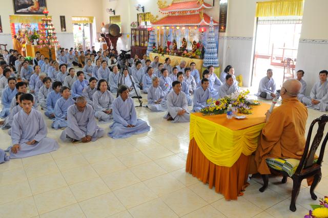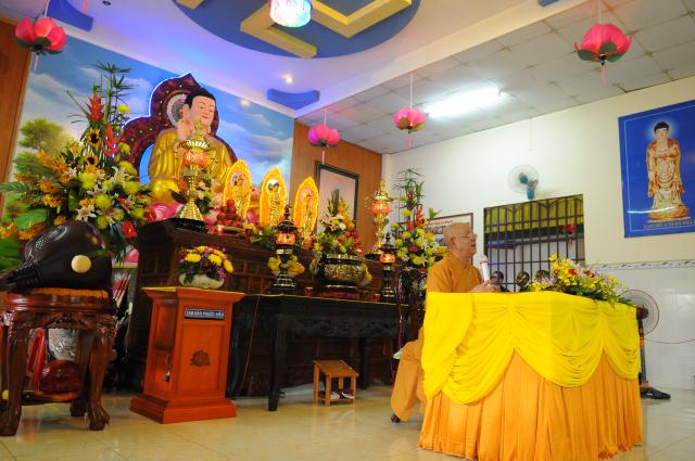 Vào lúc 7h30 sáng là thời pháp thoại dành cho chư thiện nam tín nữ Phật tử gần xa. Đại đức trụ trì đã cung thỉnh HT. Thích Thiện Bảo – UVHĐTS, Phó Ban Hoằng pháp TW, Tổng biên tập báo Giác Ngộ về thuyết giảng, với chủ đề “ý nghĩa việc lập trai đàn Dược Sư”. Thời pháp này như là lời sách tấn, động viên và tạo lập niềm tin đối với Tam bảo trong lòng quý Phật tử.