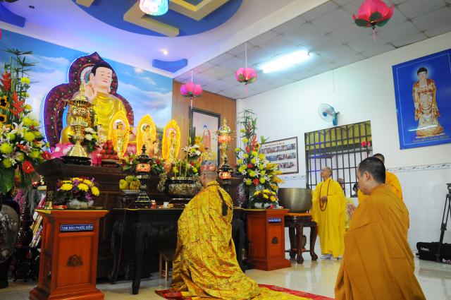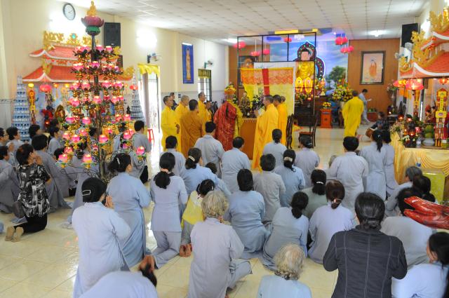 14h00 chiều là đại lễ trai đàn chẩn tế cầu siêu bạt độ cho cửu huyền thất tổ, chư chiến sĩ trận vong, đồng bào tử nạn. Việc làm này mang ý nghĩa tâm linh sâu sắc, mà lần đầu tiên, tại mảnh đất này, Đại đức trụ trì cùng quý Phật tử đã thực hiện. Với mong muốn mang pháp mầu của Phật phổ rộng khắp quần sanh. Sự dấn thân không mõi, nhiệt huyết mang đạo vào đời của ĐĐ. Thích Chí Giác Thông từ ngày đến mảnh đất này là thế. Luôn làm tất cả những gì có thể, để Phật pháp đến gần hơn với cuộc đời.