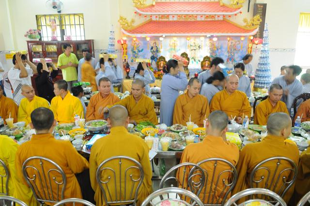 Khóa lễ khai kinh bạch Phật và cúng ngọ được Ban Kinh sư thực hiện ngay sau đó. 11h00 trưa là lễ cúng dường trai tăng. Nhân cơ hội gieo trồng ruộng phước, ĐĐ. Thích Chí Giác Thông đã hướng dẫn Phật tử cùng tác lễ cúng dường, gieo duyên với Tam bảo, trồng nhân lành với Phật pháp.