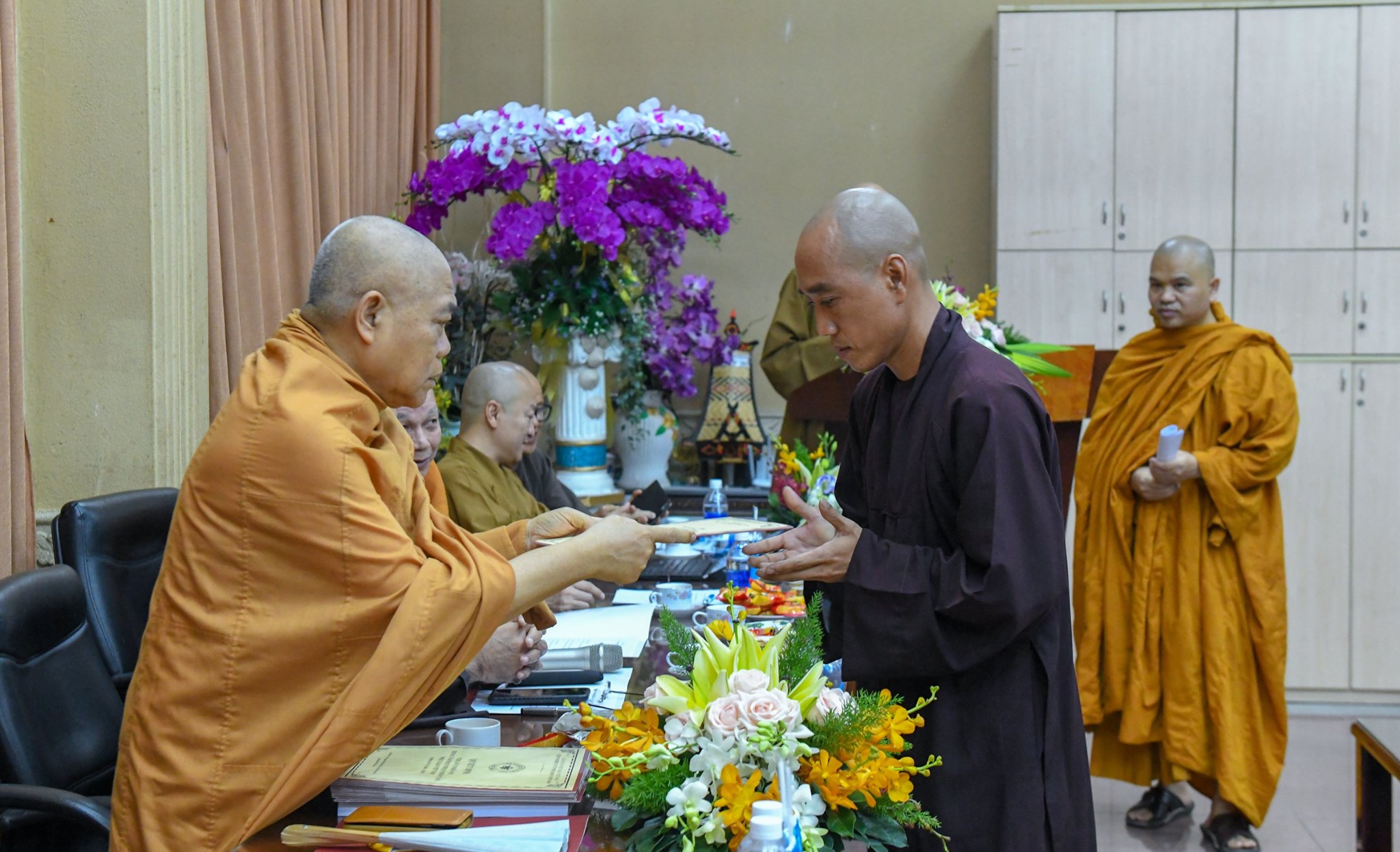 Cũng trong phiên họp sáng nay của chư tôn đức Viện nghiên cứu Phật học Việt Nam, chư tôn đức thành viên đã lắng nghe báo cáo về tình hình phiên dịch, dò bản và ấn hành bộ Thánh điển PGVN, cũng như các báo cáo về tình hình của các Trung tâm nghiên cứu trực thuộc VNCPGVN quản lý.