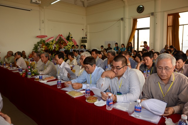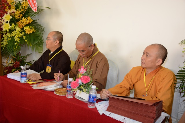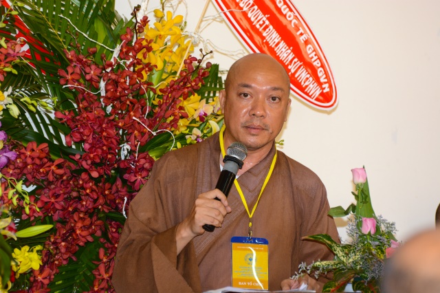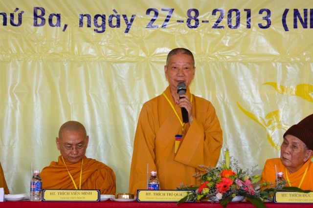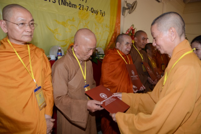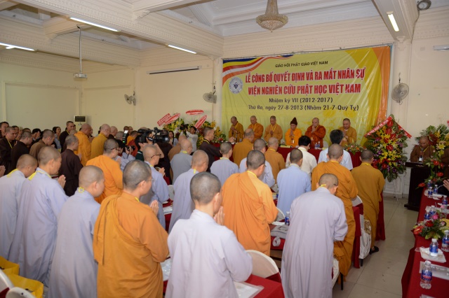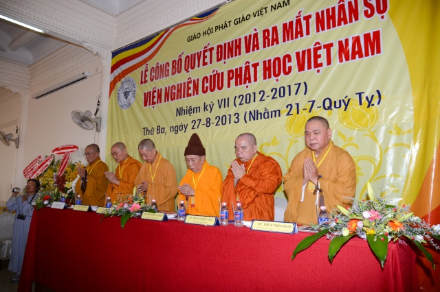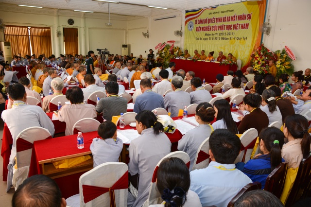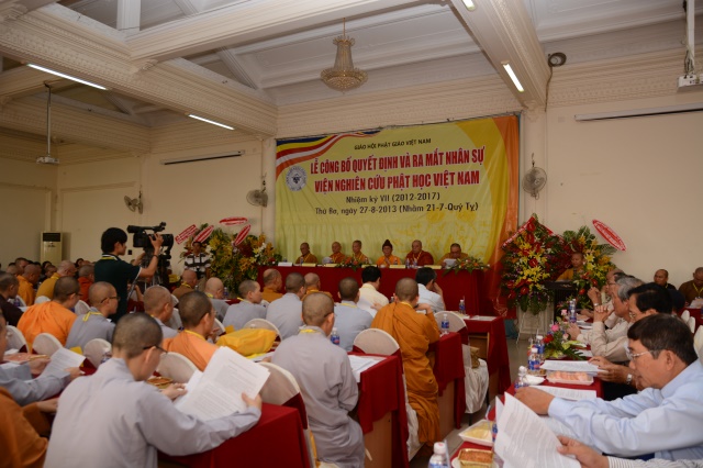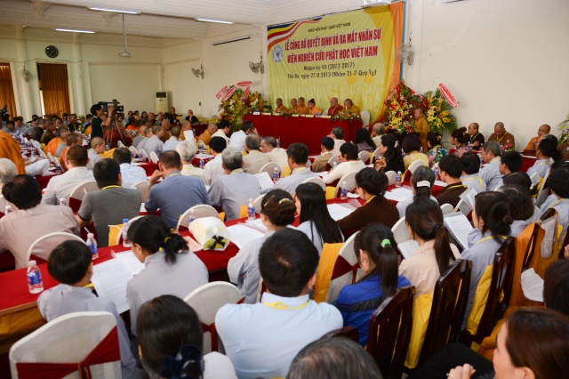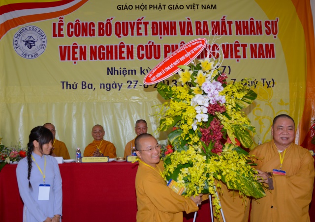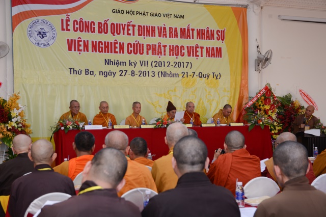 HT. Thích Thiện Pháp thay mặt chư tôn đức VP II TW GHPGVN tuyên đọc quyết định của HĐTS GHPGVN. HT. Thích Đức Nghiệp trao quyết định Viện trưởng Viện nghiên cứu HT. Thích Trí Quảng. Cũng tại buổi lễ, HT. Thích Trí Quảng thay mặt chư tôn đức trao quyết định đến các thành phần nhân sự thuộc Viện nghiên cứu nhiệm kỳ VII, 2013 – 2017.