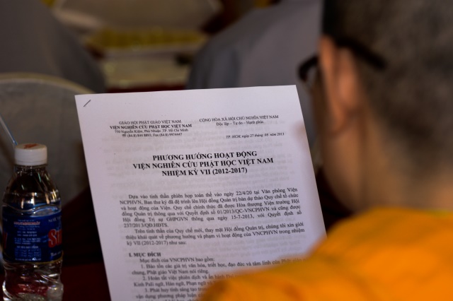 TT. TS Thích Nhật Từ, phó Viện trưởng Học viện Phật giáo, trưởng ban Văn hóa GHPGVN TP.HCM tuyên đọc phương hướng hoạt động của Viện. Phương hướng hoạt động được xây dựng theo 4 chương, với rất nhiều mục nhỏ và cụ thể. Chương I, mô tả đầy đủ mục đích của VNCPHVN, có 6 điều khoản. Chương II nói về nhiệm vụ và phương hướng hoạt động, có 2 điều khoản và rất nhiều mục nhỏ. Chương III nói đến sự phát triển các trung tâm trực thuộc bao gồm 10 mục nhỏ.  Chương IV nêu rõ việc in ấn và phát hành, gồm 2 điều và nhiều mục nhỏ. Đây là phương hướng hoạt động được mô tả một cách chi tiết và cụ thể, hứa hẹn sẽ đạt nhiều thành quả tốt đẹp khi Viện chính thức bắt tay vào hoạt động.