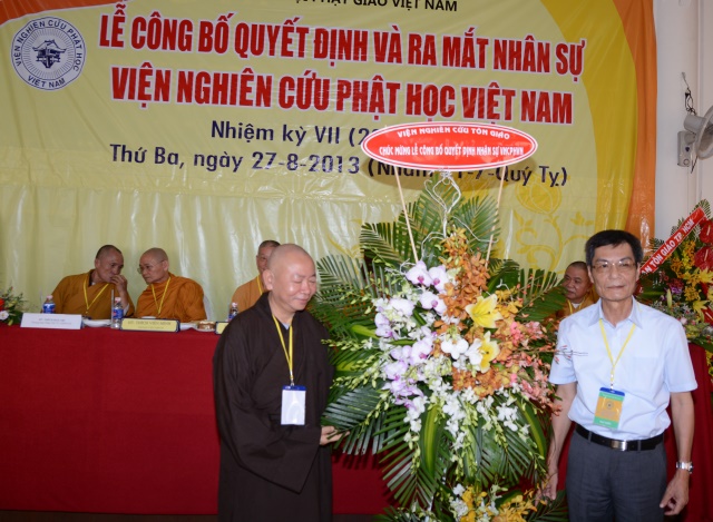 Ông TS. Nguyễn Quốc Tuấn, Viện trưởng Viện nghiên cứu Tôn giáo, viện Hàn lâm khoa học Việt Nam cũng đã phát biểu như sau: “Chúng tôi rất vinh dự được tham dự buổi lễ ra mắt đầy trân trọng này. Trong đó, tôi rất ấn tượng và thích thú với chương trình và phương hướng hoạt động của Viện nghiên Cứu Phật học Việt Nam đã đề ra. Dự án này không chỉ đáp ứng nhu cầu tâm linh cho cộng đồng mà còn là tư tưởng nghiên cứu khoa học của Phật giáo Việt Nam. Phật giáo có những vai trò, vị trí quan trong trong lịch sử nước nhà, khẳng định Phật giáo Việt Nam không phải từ bên ngoài vào mà nó đã có mặt ngay từ trong đất nước, con người Việt Nam. Nhân đây, chúng tôi có 2 đề xuất với Viện nghiên cứu Phật học Việt Nam. Thứ nhất: Viện nên cho ra đời được cuốn Tạp chí chuyên ngành cho Viện nghiên cứu. Kế đó là đào tạo bậc sau Đại học cho tăng ni, nói đúng hơn là môi trường đào luyện học viên Cao học. Thứ hai: Viện nên tố chức các Hội thảo cấp quốc gia và quốc tế. Điều cuối cùng chúng tôi mong muốn, Viện nghiên cứu Tôn giáo Viện Hàn lâm Việt Nam và Viện nghiên cứu Phật học Việt Nam nên kết hợp để tổ chức các hội thảo cấp quốc gia và quốc tế. Hy vọng chúng ta có được sự hợp tác thực tiễn này, để giúp cho VNCPHVN và VNCTGHLKH của chúng tôi sẽ phát triển hơn nữa”.