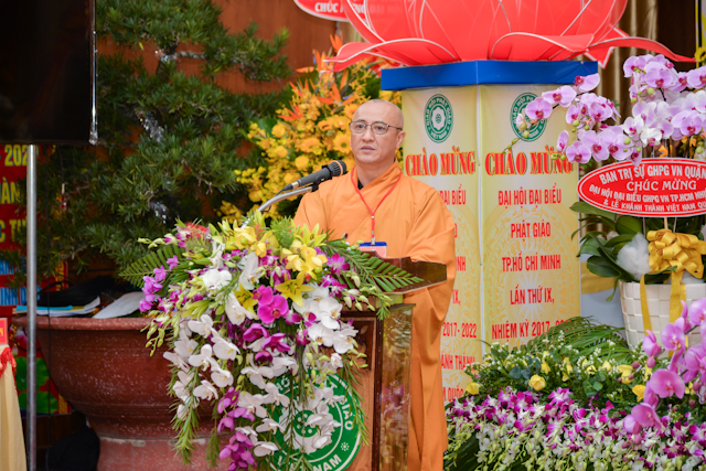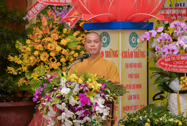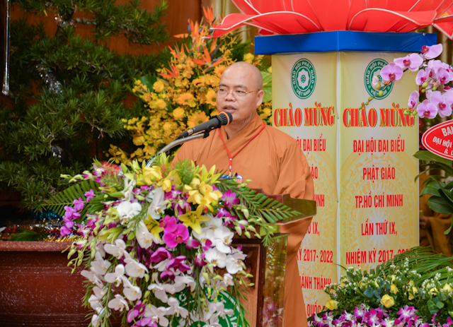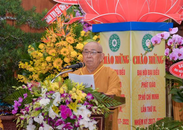 Đại hội Đại biểu Phật giáo TP.HCM lần thứ IX, nhiệm kỳ 2017- 2022 lần này, là một sự kiện trọng đại và đầy ý nghĩa, đánh dấu sự phát triển mạnh mẽ vượt bậc của Phật giáo TP.HCM trong 5 năm qua với sự thành tựu to lớn và nổi bật trong công tác Phật sự. Đại hội sẽ đúc kết những kinh nghiệm, khắc phục những hạn chế và phát huy những ưu điểm; đồng thời mở ra một bước tiến mới trên tinh thần: “đoàn kết Tăng đoàn, ổn định nhân sự và phát triển Giáo hội” , nghiêm túc trong Tăng đoàn, nhiệt tâm trong góp ý, tích cực trong công việc hội nhập, nhằm ứng dụng phù hợp với hoàn cảnh đổi mới của đất nước, xây dựng bền vững ngôi nhà Phật giáo TP.HCM trong thời kỳ hội nhập phát triển. Vì vậy, chúng tôi rất hy vọng và kêu gọi toàn thể Tăng Ni cùng Phật tử thành phố chúng ta cần có sự thống nhất ý chí và hành động, thống nhất lãnh đạo và tổ chức, cùng nhau hợp nhất hài hòa và đồng tâm hiệp lực bằng cả trí tuệ và trái tim thật sự của mình để nghiêm túc chọn lọc, đề cử các nhân sự mới với đầy đủ tài đức, có trình độ và năng lực làm việc, mang tính kế thừa và ổn định để suy cử một Tân Ban Trị sự GHPGVN TP.HCM nhiệm kỳ IX (2017- 2022) có đủ năng lực, tâm huyết và trí tuệ nhằm tiếp nối chư vị tiền nhân, gánh vác sự nghiệp ổn định phát triển bền vững ngôi nhà tâm linh Phật giáo TP.HCM đúng tầm và đầy chất lượng, xứng đáng với tên gọi của nó trong vai trò “tác Như Lai sứ, hành Như Lai sự,”đáp ứng nguyện vọng của toàn thể Tăng Ni và đồng bào Phật tử thành phố mà Đại hội giao phó.”