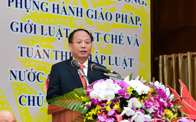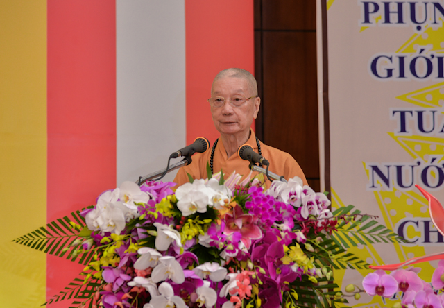 HT.Thích Thiện Nhơn thay mặt TW GHPGVN cũng tán thán công đức những thành tựu của Phật giáo thành phố trong công cuộc phát triển giáo hội, phục vụ nhân sinh.