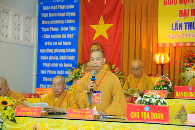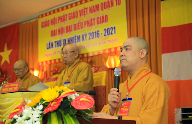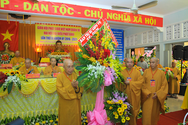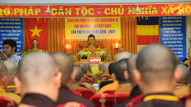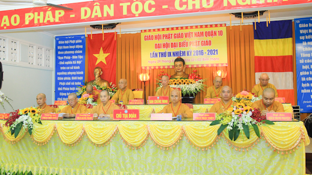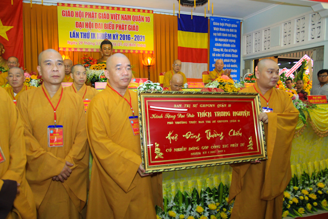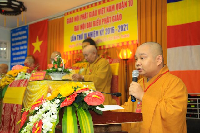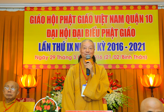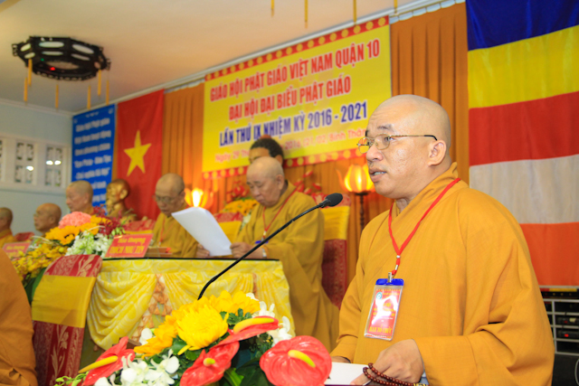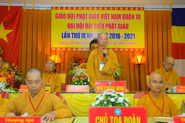 Qua chương trình hoạt động Phật sự nhiệm kỳ IX của Phật giáo Quận 10, sẽ được ứng dụng phù hợp với hoàn cảnh đổi mới của đất nước trên con đường hội nhập phát triển. Chúng tôi rất mong được sự đóng góp ý kiến, thảo luận và nhiệt tình xây dựng của quý Đại biểu để đưa chương trình hoạt động của Phật giáo Quận 10, lần thứ IX, nhiệm kỳ 2016 – 2021 thành công tốt đẹp nhằm xây dựng và phát triển ngôi nhà chung của Giáo hội ngày càng trang nghiêm, vững mạnh trong lòng dân tộc.”