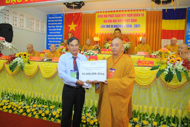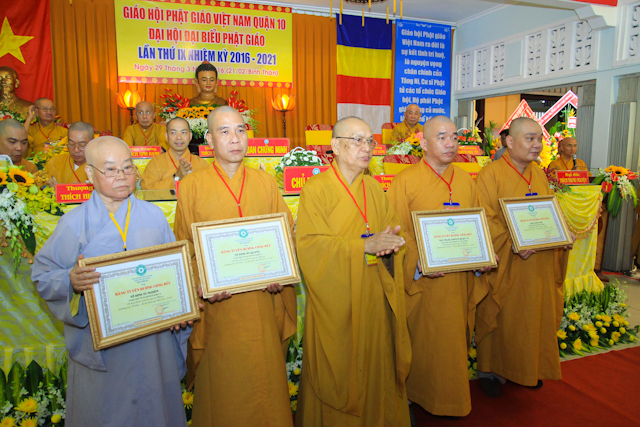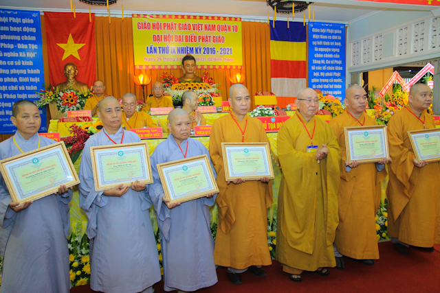 Với những công tác Phật sự và an sinh xã hội hoàn thành tốt trong Nk VIII vừa qua. Ban thường trực BTS PG TP.HCM và UBND, UBMTTQ quận 10 đã trao tặng nhiều bằng tuyên dương công đức và giấy khen cho các tập thể, cá nhân có những đóng góp xuất sắc. Cũng trong dịp này, Ban tổ chức đã trao 50 triệu đồng ủng hộ quỹ “Vì biển đảo yêu thương, vì tuyến đầu tổ quốc”.