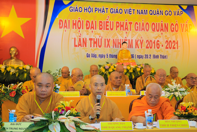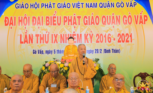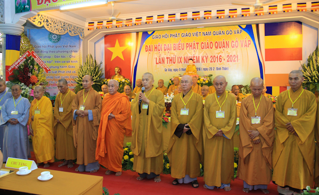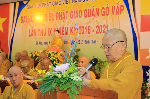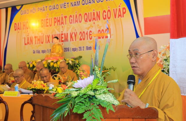 Phát biểu Khai mạc Đại hội HT. Thích Nhật Lang, Trưởng BTS PG Q. Gò Vấp, Trưởng Ban tổ chức nhấn mạnh: Phật giáo là một tôn giáo lớn, với thời gian lịch sử hơn 2000 năm du nhập vào Việt Nam, góp phần xây dựng hoà bình và mang lại an vui cho đất nước dựa trên nền tảng Từ Bi, vô ngã, với tinh thần hộ quốc an dân được truyền thừa từ bao thế hệ và thuấn nhuần vào đạo lý dân tộc, luôn luôn đồng hành cùng với sự phát triển của đất nước.