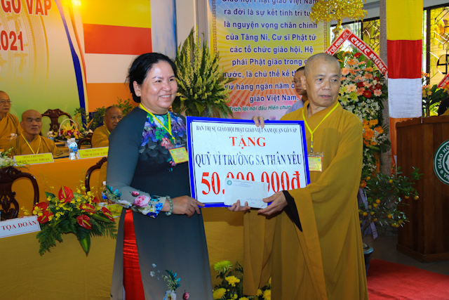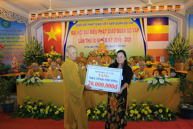 Quyết định tặng bằng tuyên dương Công đức và bằng Công đức của Thường trực PG Tp. HCM do TT. Thích Thiện Quý, Chánh thư ký công bố, Quyết của MTTQ thành phố và Quận do bà Nguyễn Thị Thảo, Phó Chủ tịch Thường trực UBMTTQ Quận Công bố.