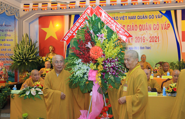 Cung thỉnh 04 vị hòa thượng trong ban chứng minh. Đại hội cũng đã suy cử HT.Thích Nhật Lang tiếp tục đảm nhiệm chức danh Trưởng Ban trị sự Phật giáo quận Gò Vấp, TT. Thích Giác Trí – Phó trưởng ban Thường trực, , HT.Thích Minh Ngãi – Phó ban trị sự, TT. Thích Giác Tín – Phó Ban Trị Sự, TT. Thích Tắc Bạch – Chánh Thư ký BTS.