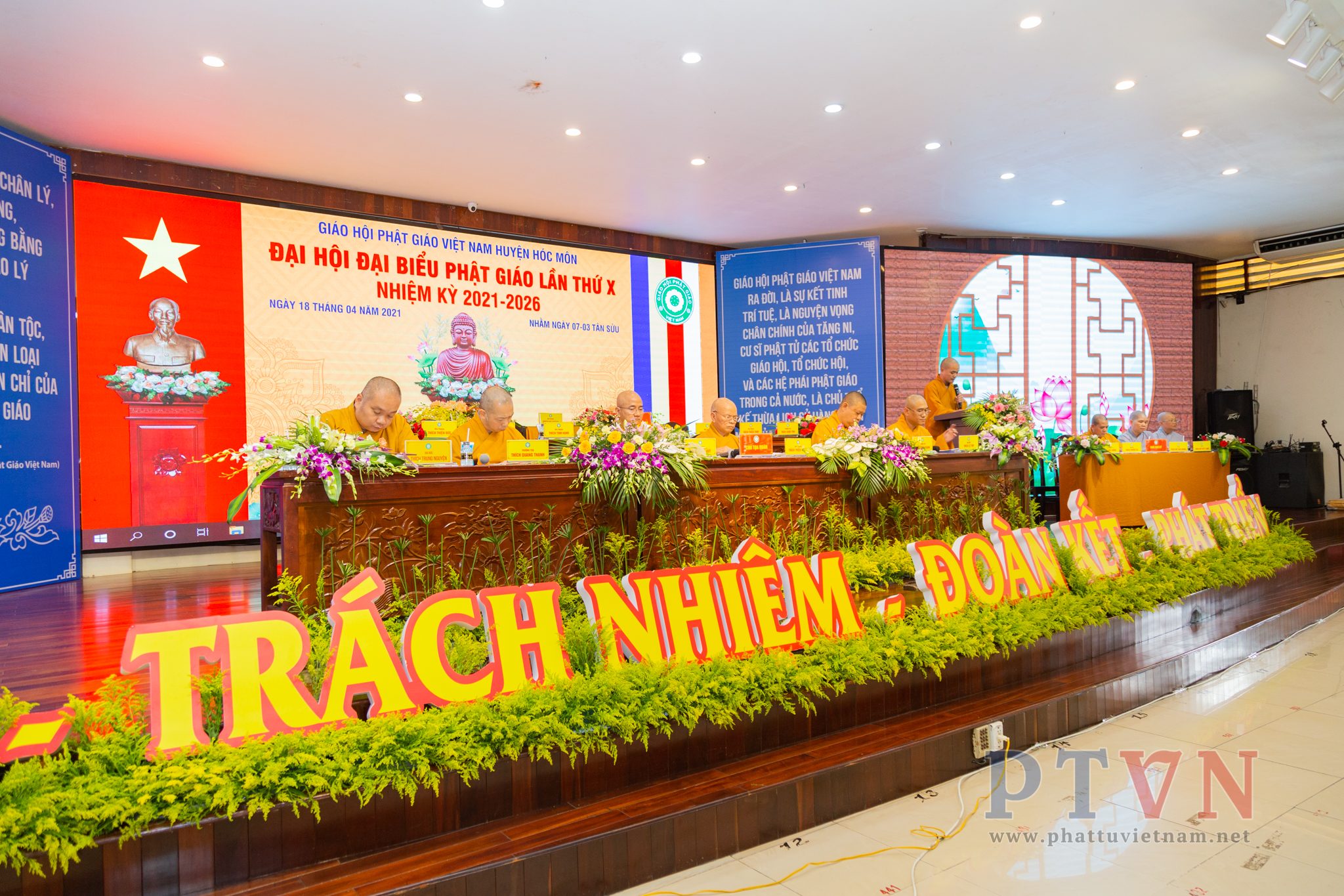 Tại đây, đại diện tiểu ban Nhân sự đã trình danh sách giới thiệu nhân sự được suy cử vào tân Ban Trị sự GHPGVN H.Hóc Môn nhiệm kỳ 2021 – 2026. Sau đó, Hoà thượng Trưởng Ban Trị sự lấy ý kiến các đại biểu và biểu quyết thông qua danh sách nhân sự tại Đại hội chính thức.