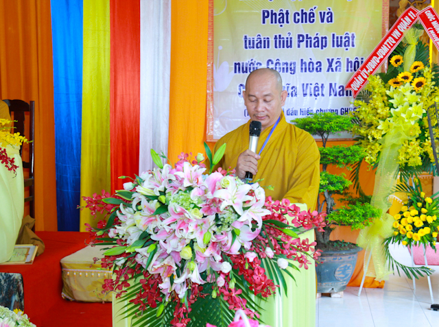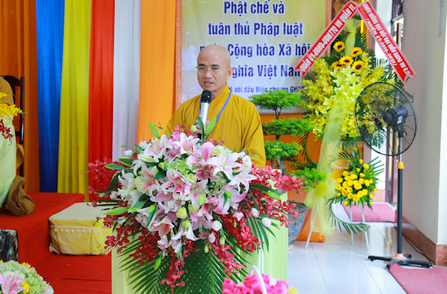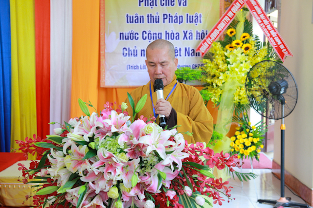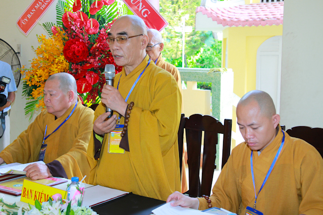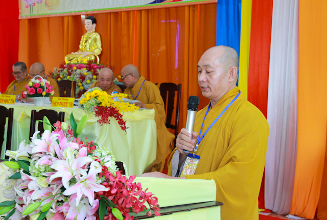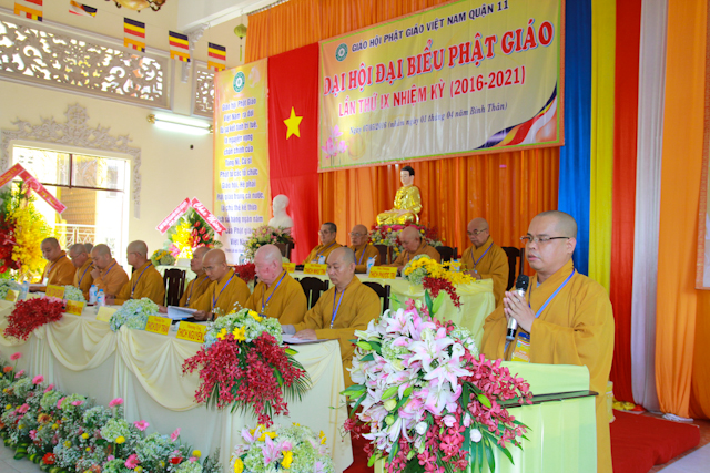 Thay mặt thường trực BTS PG TP.HCM; HT. Thích Thiện Tánh – Phó Chủ tịch HĐTS, Phó trưởng Ban thường trực phát biểu lấy ý kiến thông qua danh sách nhân sự nhiệm kỳ IX, 2016 – 2021 tân BTS GHPGVN Q.11.