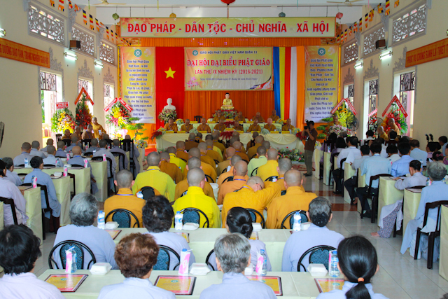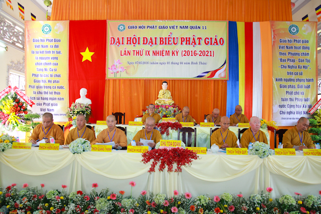 Chủ tọa đoàn có; TT. Thích Thiện Ngộ, Trưởng BTS GHPGVN Q.11, TT. Thích Duy Trấn, Phó trưởng Ban Thường trực BTS PG Q.11, TT. Thích Thiện Qúy, Chánh thư ký, TT. Thích Quang Thạnh – Phó thư ký kiêm Chánh Văn phòng BTS, TT. Thích Hiển Đức, ĐĐ. Thích Trung Nguyện – đồng Phó Thư ký kiêm Phó Văn phòng BTS GHPGVN TP.HCM, TT. Thích Nguyên Sỹ, Chánh thư ký BTS PG Q.11 cùng chư tôn đức Đại diện cho Ban Trị sự Phật giáo các quận – huyện bạn, chư tôn đức Tăng Ni trụ trì các tự viện và Phật tử các đạo tràng của các tự viện trong quận 11 đã đến chứng minh và tham dự.