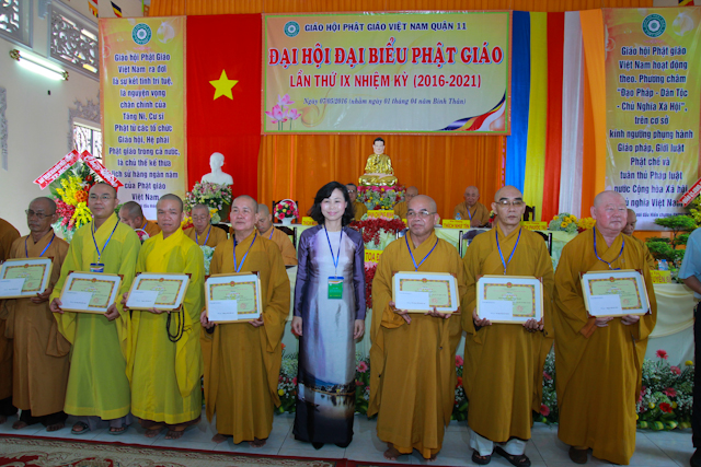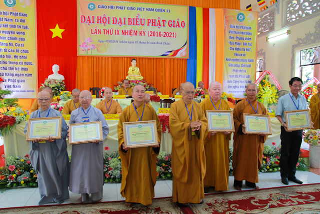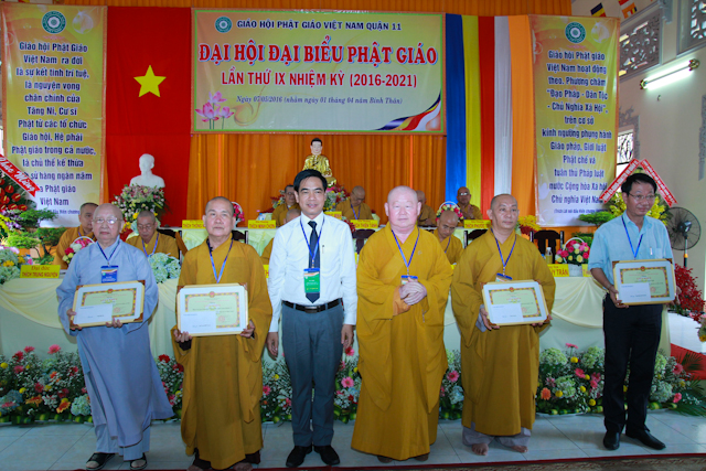 Cũng tại Đại hội thay mặt cho UBND Q. 11; ông Ngô Văn Lộc, Phó phòng Nội vụ quận đã đọc quyết định số 154/ QĐ – UBND về thành tích hoàn thành xuất sắc công tác Phật sự cho 04 tập thể và 10 cá nhân thuộc BTS GHPGVN Q.11, nhiệm kỳ 2012 – 2016.