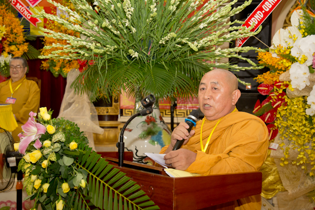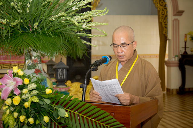 Tiếp đến là báo cáo những hoạt động Phật sự trong nhiệm kỳ qua. TT.Thích Quang Huy – Chánh Thư ký trình bày.