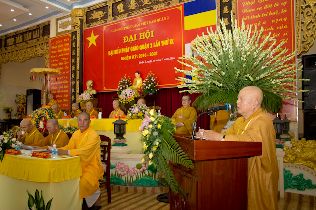 Tiếp theo, 25 thành viên Tân Ban Trị sự GHPGVN quận 2, nhiệm kỳ IX (2016 – 2021) đã ra mắt Đại hội và phát biểu nhận nhiệm vụ.