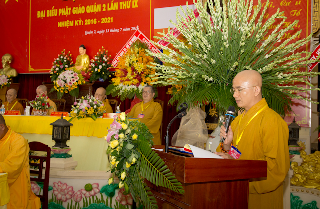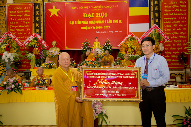 Quang lâm chứng minh và tham dự Đại hội có HT. Thích Trí Quảng, Phó pháp chủ HĐCM, Trưởng BTS GHPGVN, Trưởng Ban chỉ đạo Đại hội, HT. Thích Thiện Tánh, Phó Chủ tịch HĐTS, Phó trưởng Ban thường trực BTS PG TP.HCM, HT. Thích Minh Chơn, HT. Thích Tịnh Hạnh, , đồng Phó BTS GHPGVN TP.HCM, HT. Thích Thiện Minh, Trưởng BTS GHPGVN quận 2, trưởng BTC Đại hội. TT. Thích Thiện Qúy, Chánh thư ký BTS GHPGVN, TT. Thích Quang Thạnh – Phó thư ký kiêm Chánh văn phòng BTS PG TP.HCM, ĐĐ. Thích Trung Nguyện – Phó Thư ký kiêm Phó văn phòng BTS GHPGVN TP.HCM cùng chư tôn đức Đại diện cho Ban Trị sự Phật giáo các quận – huyện bạn, chư tôn đức Tăng Ni trụ trì các tự viện và Phật tử quận 2 cùng tham dự.