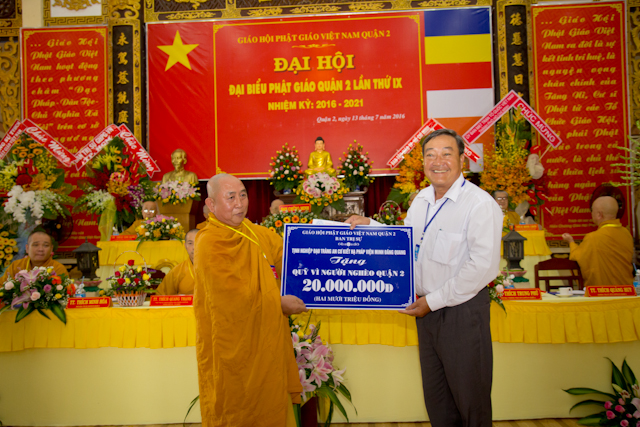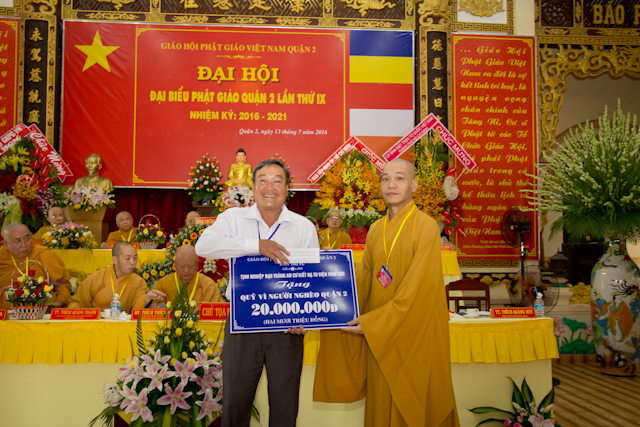 Tại Đại hội, BTS PG quận 2 đã trao 20 triệu đồng ủng hộ quỹ vì người nghèo quận 2, Pháp viện Minh Đăng Quang cũng ủy hộ 20 triệu đồng.
