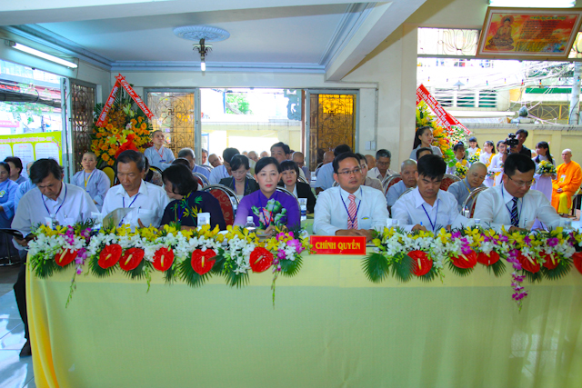 Đại diện các cấp chính quyền có ông Nguyễn Văn Đượm – Trưởng phòng Phật giáo Ban Tôn giáo TP.HCM, Bà Trần Thị Ngọc Thanh – Phó phòng Phật giáo BTG TP.HCM, ông Trần Hoàng Danh – Bí Thư Quận ủy quận 4, ông Lê Văn Tâm – Phó phòng Nội vụ Q.4. cùng đại diện lãnh đạo các phòng ban quận và lãnh đạo chính quyền tại địa phương sở tại.
