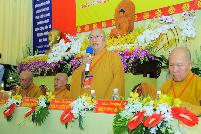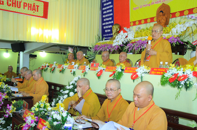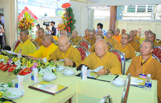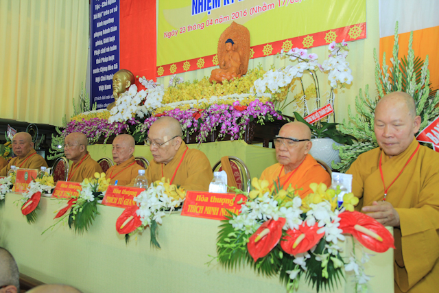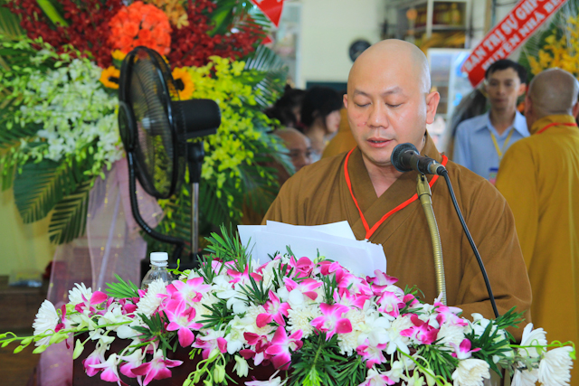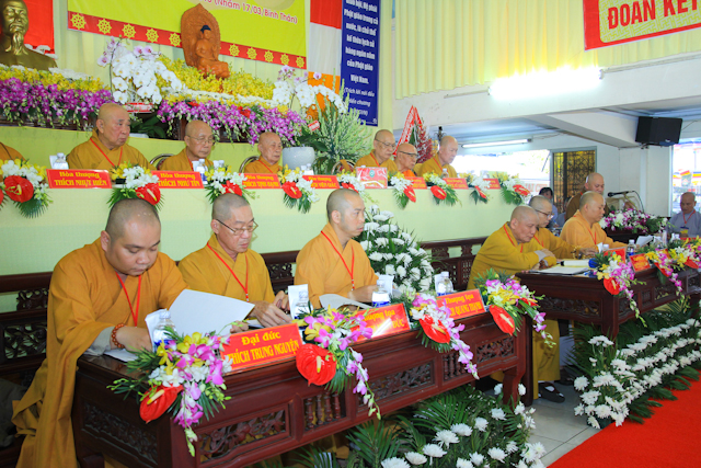 Chủ tọa đoàn có: TT. Thích Quang Thạnh – Phó thư ký kiêm Chánh văn phòng BTS PG TP.HCM, TT. Thích Thiện Đức, ĐĐ. Thích Trung Nguyện – Phó Thư ký kiêm Phó văn phòng BTS GHPGVN TP.HCM.