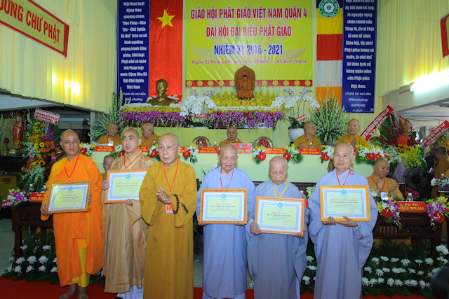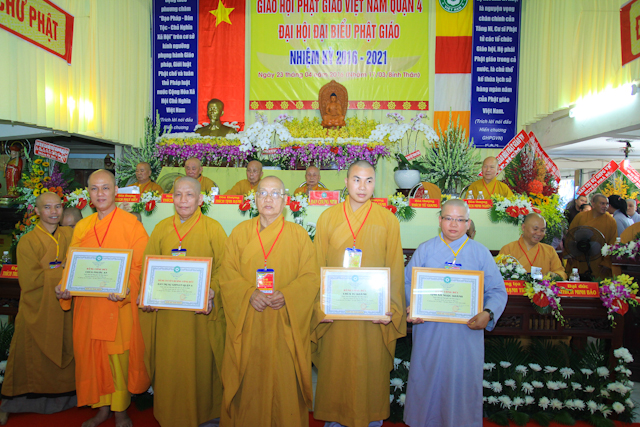 Trong nhiệm kỳ 2012 – 2016 Phật giáo Q.4 đã đạt nhiều thành tưu trên. Theo đó, thường trực BTS PG TP. HCM, UBMTTQ TP. HCM, UBND, UBMTTQ quận 4 đã có quyết định khen thưởng cho tập thể và cá nhân tại Đại hội.