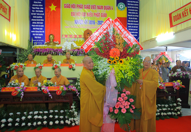 Quang lâm chứng minh và tham dự Đại hội có HT. Thích Viên Giác – ủy viên Thường trực HĐCM, HT.Thích Thiện Tánh – Phó Chủ tịch HĐTS – Phó Trưởng Ban Thường trực BTS GHPGVN TP.HCM, HT. Thích Tịnh Hạnh, HT. Thích Như Tín – đồng Phó BTS GHPGVN TP.HCM, HT.Thích Minh Nghĩa, HT. Thích Từ Giang – Cố vấn Chương minh BTS PG Q.4, HT. Thích Hạnh Ngộ -Trưởng BTS GHPGVN Q.4. cùng chư tôn đức Đại diện cho Ban Trị sự Phật giáo các quận – huyện bạn, chư tôn đức Tăng Ni trụ trì các tự viện và Phật tử Q. 4 đã đến chứng minh và tham dự.