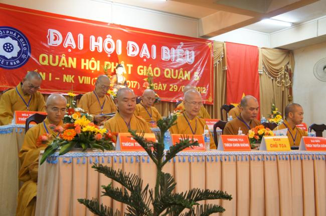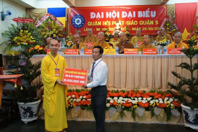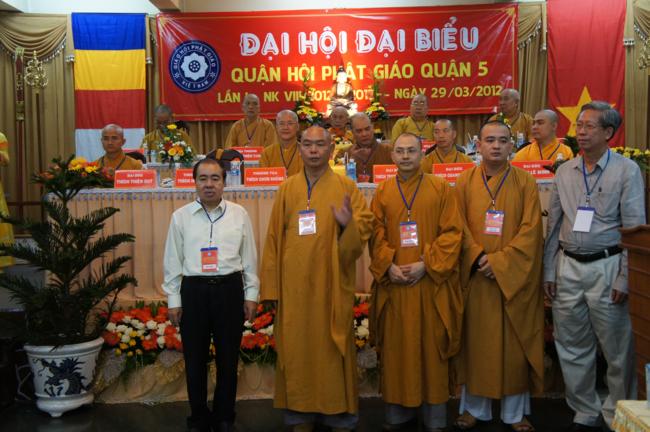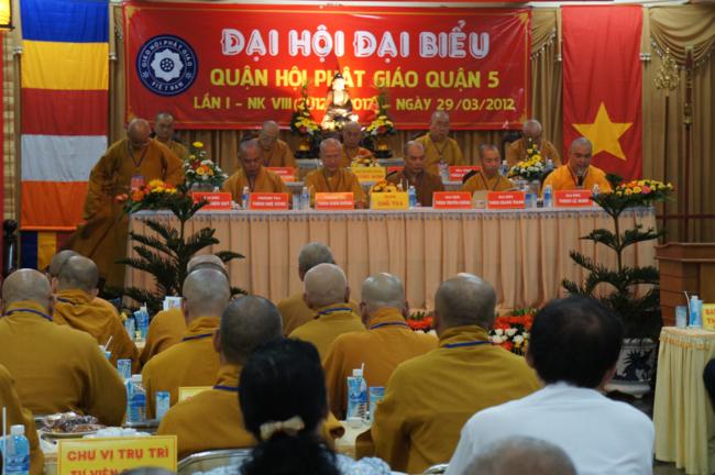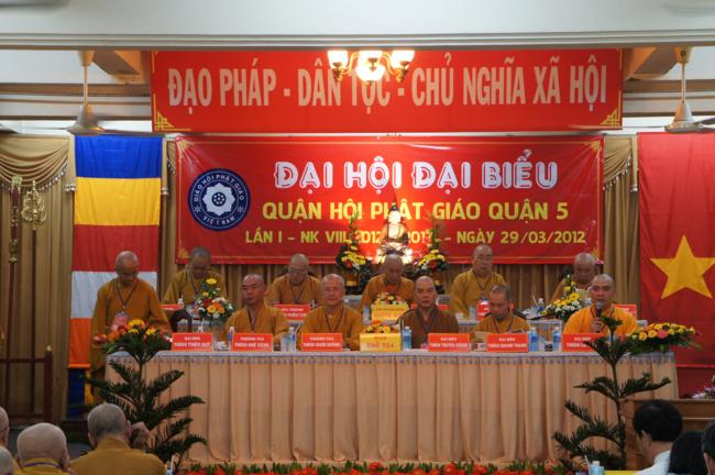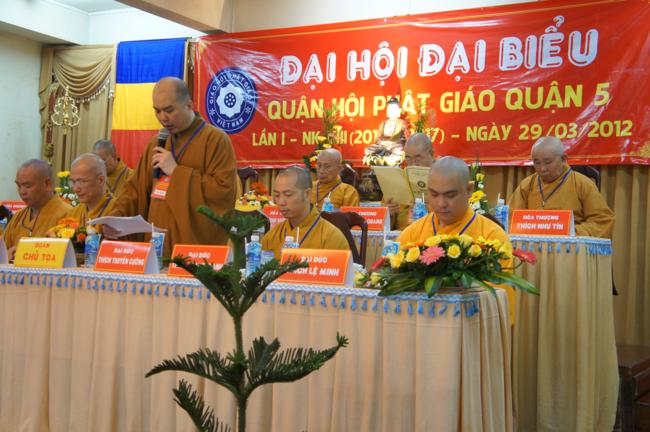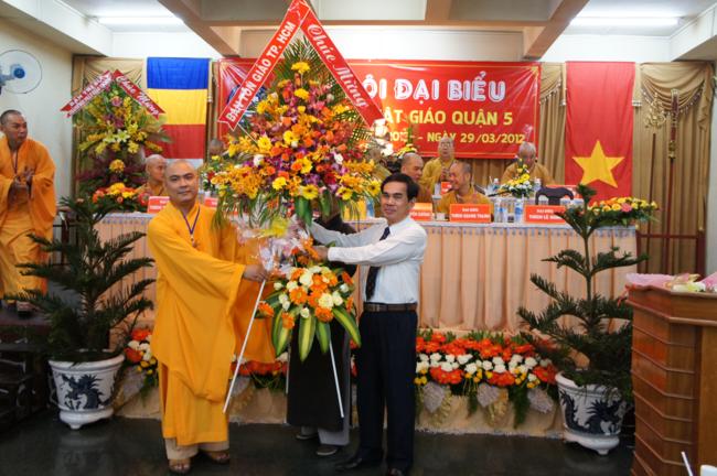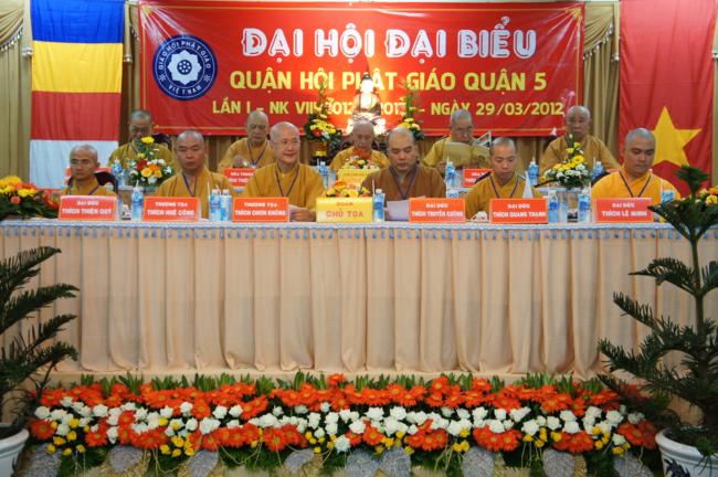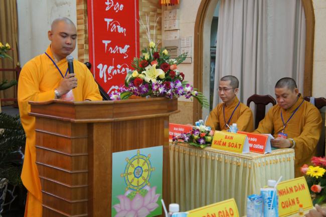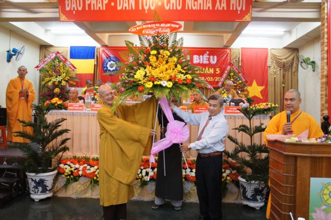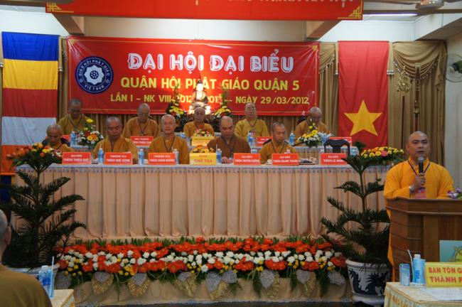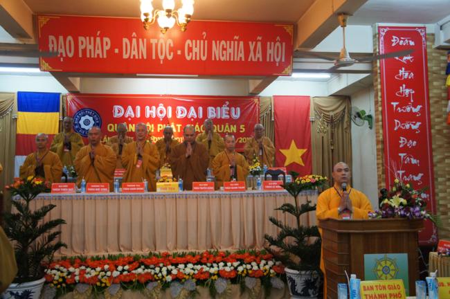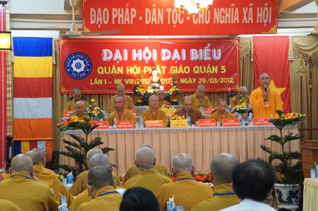 Phát biểu khai mạc TT. Thích Truyền Cường – Chánh đại diện Phật giáo Q. 5 nhấn mạnh; Trong 05 năm qua, với những điều kiện thuận lợi về chủ quan và khách quan, được sự chỉ đạo của Thành hội Phật giáo TP.HCM, sự quan tâm hỗ trợ và giúp đở chân tình của chính quyền Mặt trận và các ban ngành đoàn thể các cấp Q. 5, Ban đại diện đã sát cánh cùng Tăng ni Phật tử tích cực thực hiện các mặt công tác Phật sự, tham gia từ thiện xã hội và đã gặt hái được nhiểu thành tựu khả quan. Với những thành tựu Phật sự sau nhiều năm đổi mới của THPG đã tạo ra nhiều cơ duyên thuận lợi, một hướng phát triển Phật giáo Q. 5, một lần nữa đã khẳng định vai trò vị trí của mình trong ngôi nhà chung của Giáo hội. Từ đó đã minh định nhiệm vụ, công việc phải làm để vươn lên, thích hợp với xu hướng chung của đất nước và thời đại.