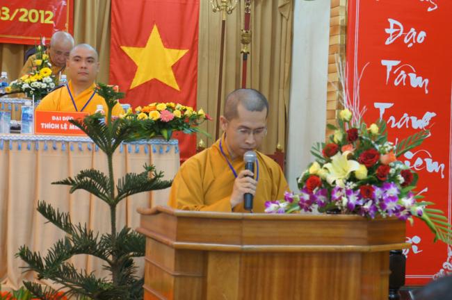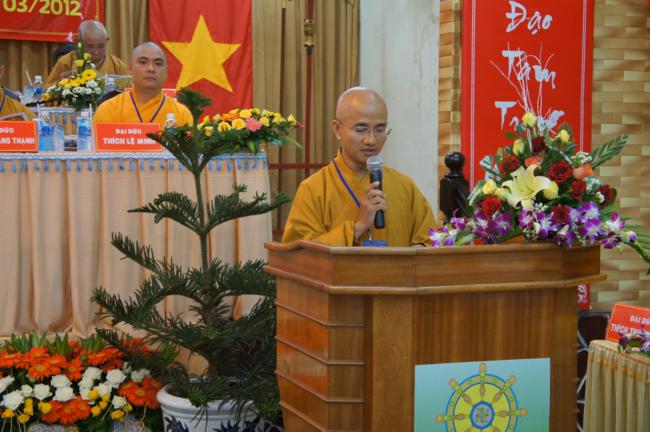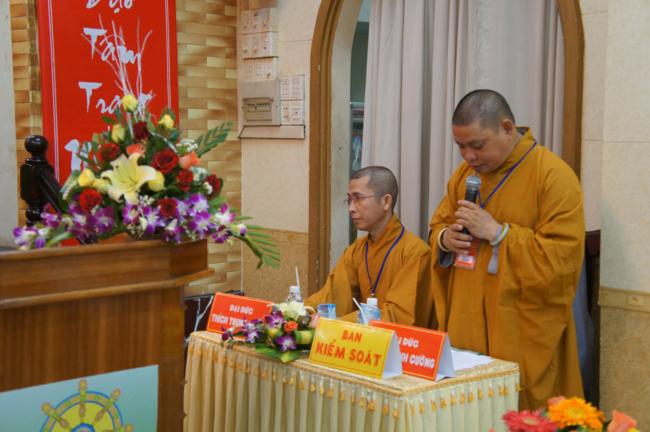 Sau khi giới thiệu thành phần tham dự. Đại đức Thích Minh Cường thay mặt ban kiểm soát báo cáo thẩm tra tư cách Đại biểu tham dự Đại hội.