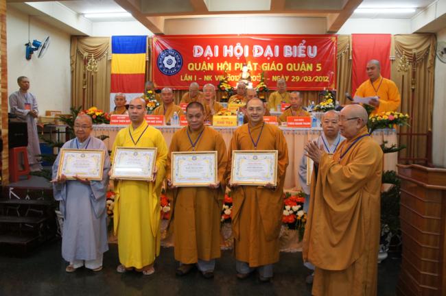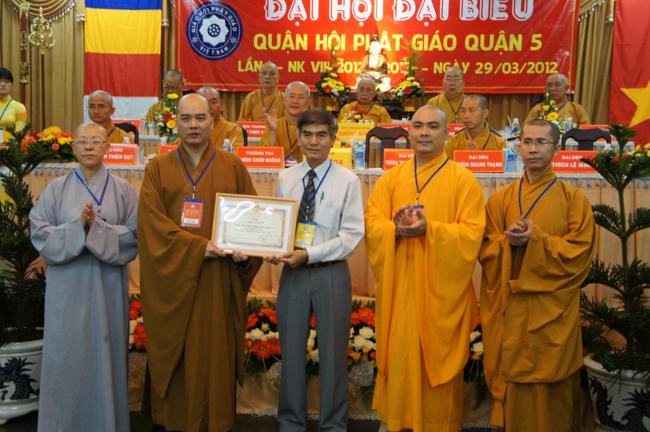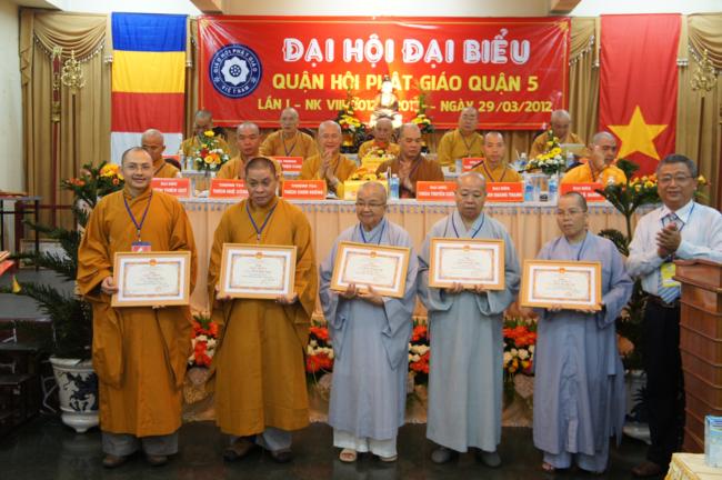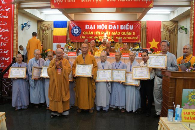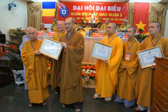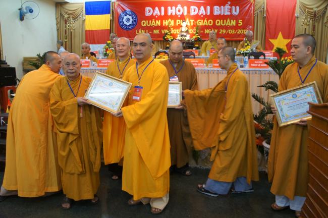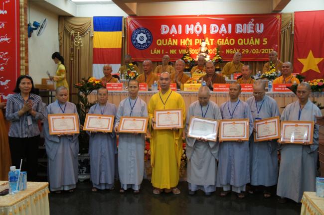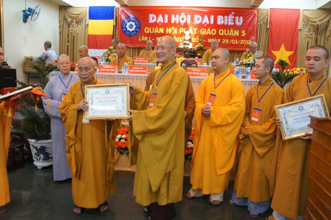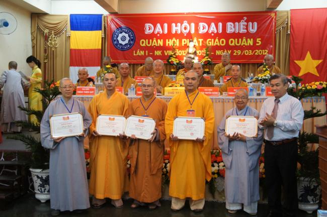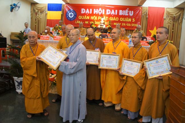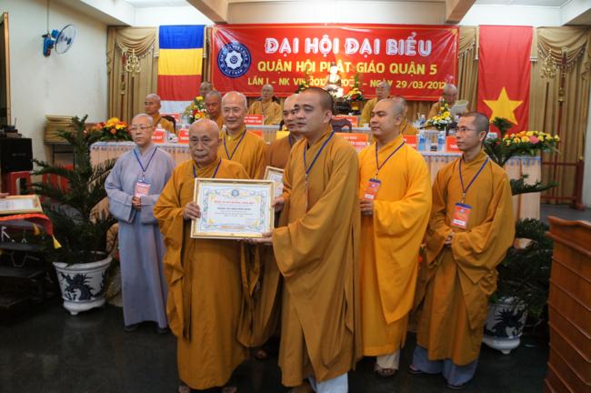 Nhân dịp này Ban đại diện cùng các tổ chức cá nhân trong quận nhà đã được Ban trị sự Thành hội Phật giáo TP.HCM tặng bằng tuyên dương công đức cho 01 tập thể & 06 cá nhân và bằng công đức cho 15 tập thể & 06 cá nhân. Song song đó Ủy ban Trung ương MTTQVN TP.HCM cũng trao Bằng khen của Mặt trận đến 06 tập thể & 06 cá nhân và ủy Ban nhân dân quận 5 cũng đã tặng giấy khen cho 19 tập thề, 09 cá nhân trong Ban đại diện quận nhà.