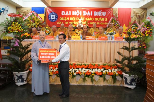 Theo báo cáo của BTC do ĐĐ. Thích Trung Nghĩa – Thư ký Ban đại diện cho biết; Quận 5 là trong quá khứ là vùng đất Chợ Lớn, là trung tâm Văn hóa của cộng đồng người Hoa, hơn 40% dân số là người Hoa sống đoàn kết vớ đồng bào người Việt trải qua nhiều thế hệ. Với chính sách Đại đoàn kết toàn Dân tộc của Đảng và Nhà nước mà từ đó Ban đại diện Phật giáo Q. 5 cùng với Mặt trận Tổ quốc Q.5 phát huy tinh thần đoàn kết Dân tộc Hoa – Việt ngày cành gắn bó và tích cực tham gia các phong trào vì sự phát triển của Quận nhà.