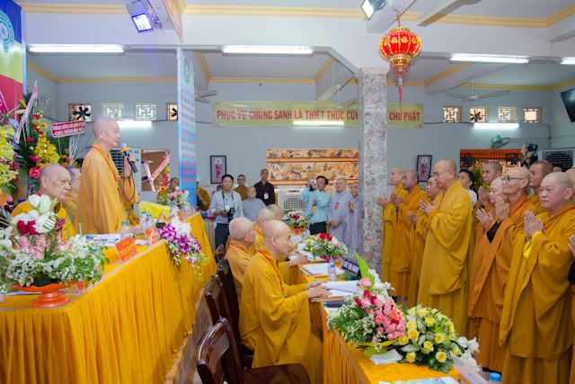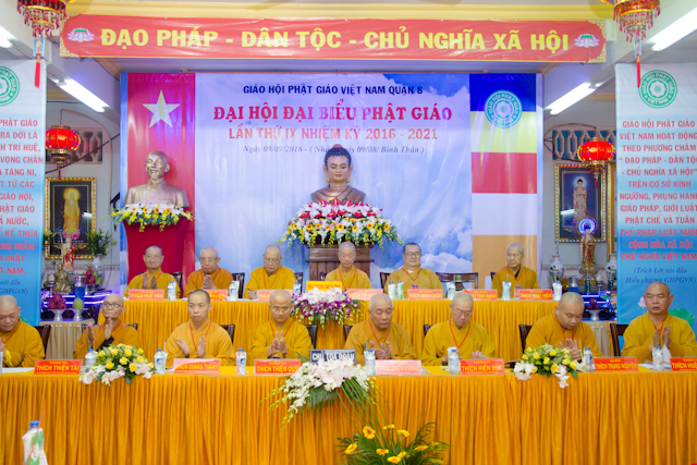 Chủ tọa đoàn gồm: TT. Thích Thiện Quý, Chánh thư ký BTS. GHPGVN Tp.HCM; TT. Thích Quang Thạnh, Phó thư ký kiêm chánh VP BTS GHPGVN Tp.HCM; ĐĐ. Thích Trung Nguyện, Phó thư ký kiêm phó chánh văn phòng BTS. GHPGVN Tp.HCM; HT. Thích Thiện Lương, Trưởng ban BTS. GHPGVN Q.8 …