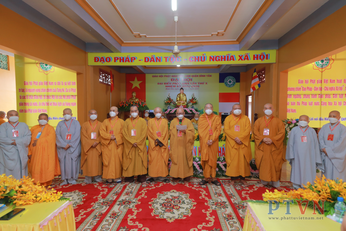 Chủ tọa Đại hội có HT.Thích Huệ Thông – quyền Trưởng Ban Trị sự GHPGVN quận Bình Tân; TT.Thích Thiện Quý – Phó Trưởng ban kiêm Chánh Thư ký Ban Trị sự GHPGVN TP.HCM; TT.Thích Quang Thạnh – phó Thư ký kiêm chánh Văn phòng Ban Trị sự GHPGVN TP.HCM; ĐĐ.Thích Trung Nguyện – phó Thư ký Ban Trị sự GHPGVN TP.HCM; TT.Thích Thiện Hạnh – phó Trưởng Ban Trị sự Phật giáo quận Bình Tân.