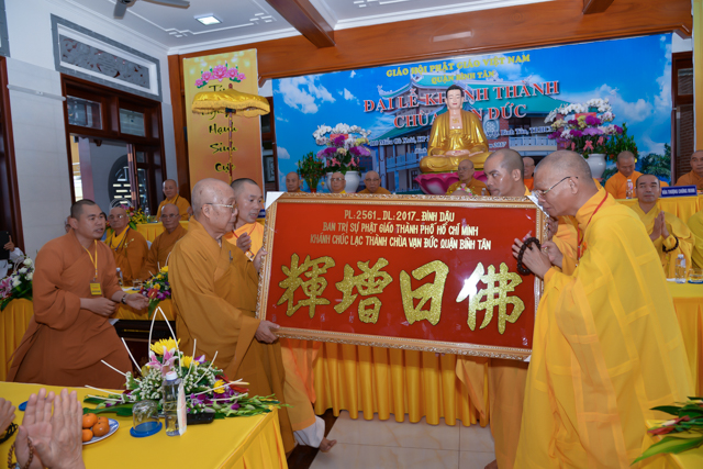 Quang lâm chứng minh có; HT. Thích Thiện Tánh – Phó Chủ tịch HĐTS, Phó trưởng Ban Thường trực BTS GHPGVN TP.HCM. HT.Thích Quang Nhuận, HT.Thích Hải Ấn – đồng UV TT HĐTS, HT. Thích Tịnh Hạnh, HT. Thích Như Tín, đồng phó Ban Trị sự PGTP.HCM cùng chư tôn giáo phẩm HĐTS, chư tôn thiền đức Tăng Ni các tình thành phố, Ban trị sự GHPGVN Q. Bình Tân, đại diện Phật giáo các quận – huyện bạn cùng đông đảo chư tôn thiền đức Tăng Ni, tông môn Pháp phái cùng quý Phật tử gần xa, lãnh đạo Đảng, Chính quyền các cấp đã đến chứng minh chú nguyện và yểm trợ.