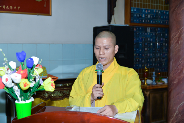 Ban đạo từ tại buổi lễ, Hòa thượng trụ trì có lời tán dương công đức các Phật tử thuần thành thường xuyên đến chùa tu học, sinh hoạt và phụng sự. Hòa thượng mong muốn sang năm mới các Phật tử sẽ cố gắn tinh tấn hơn nữa trong Tu học, từ đó tạo một nội lực tâm linh vững mạnh, niềm tin Phật pháp vững trãi để cùng chư Tăng hoằng pháp lợi sanh, phụng sự Tam bảo.