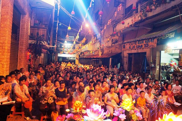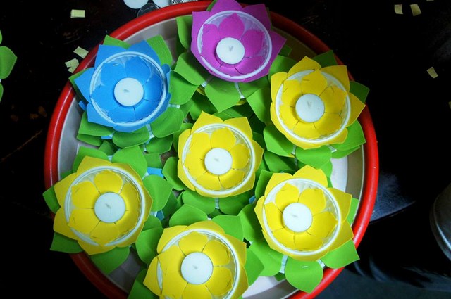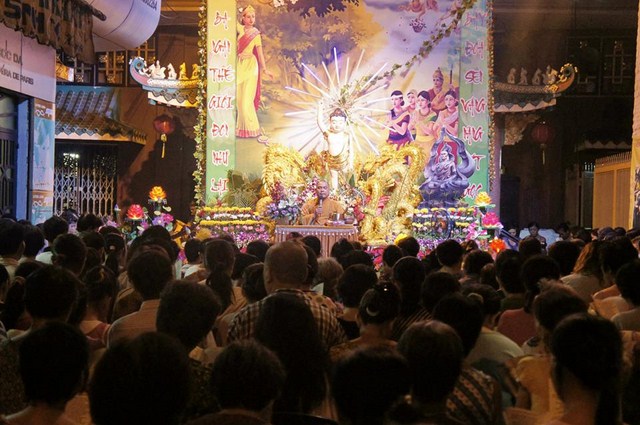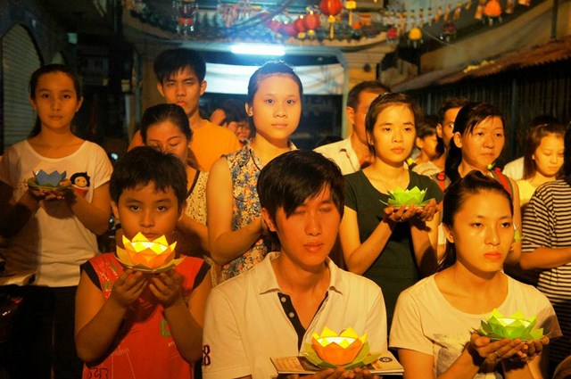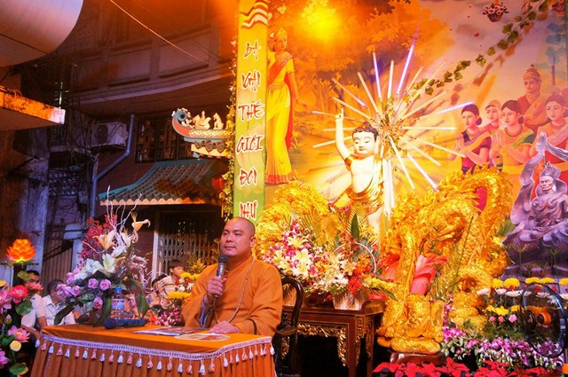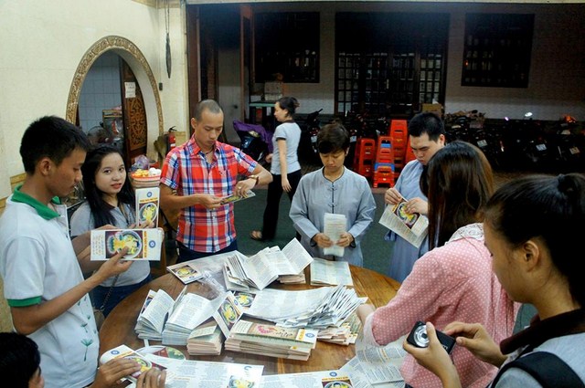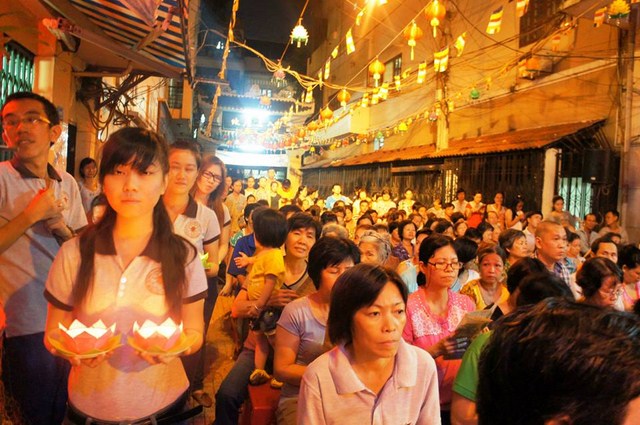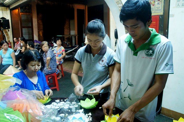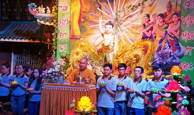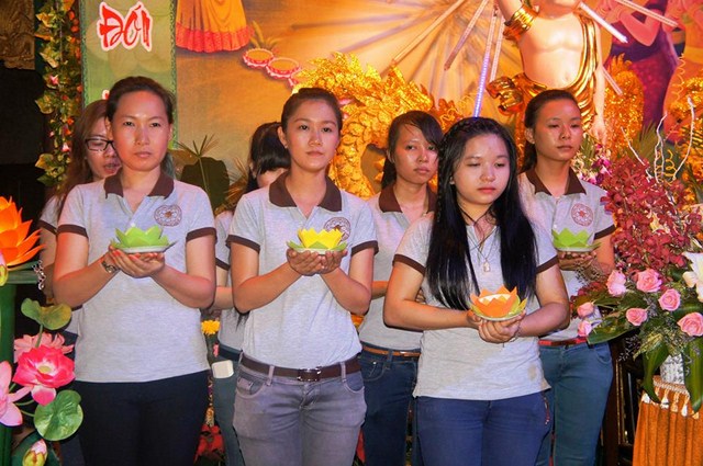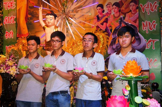 Trước đó các bạn thanh niên Phật tử “Hội những người thích đi Chùa tụng kinh, phóng sinh, phát cơm từ thiện” – Chùa Thiện Mỹ đã phụ giúp Ban tổ chức xếp hoa đăng, kinh nghi thức Phật đản, và dâng khúc tán ca bày tỏ tấm lòng tôn kính Đức Thế Tôn.
