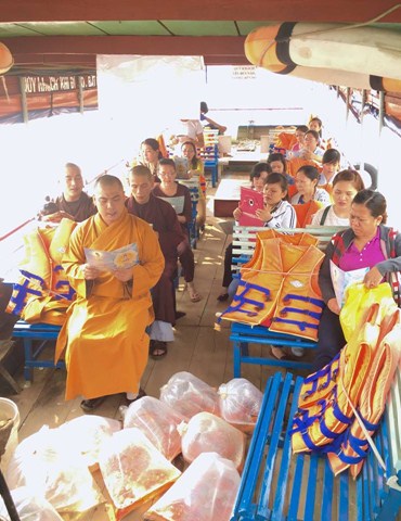 Trong buổi sinh hoạt giao lưu, Đại Đức Thích Lệ Minh đã có lời tán dương hạnh lành của đại chúng : Sống là cho đâu chỉ nhận riêng mình, sống để yêu thương góp phần xoa dịu nỗi khổ niềm đau trong cuộc đời. Thầy đã hướng dẫn đại chúng chắp tay hình búp sen, xướng niệm hồng danh của đức Bồ Tát hiểu và thương lắng nghe Quán Thế Âm, yểm trợ năng lượng bình an phúc lạc cho các trẻ : mau ăn chóng lớn, ngoan hiền học giỏi, sống hòa thuận, thương mến nhau dưới mái ấm Quê Hương thân thương.