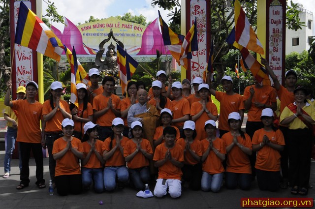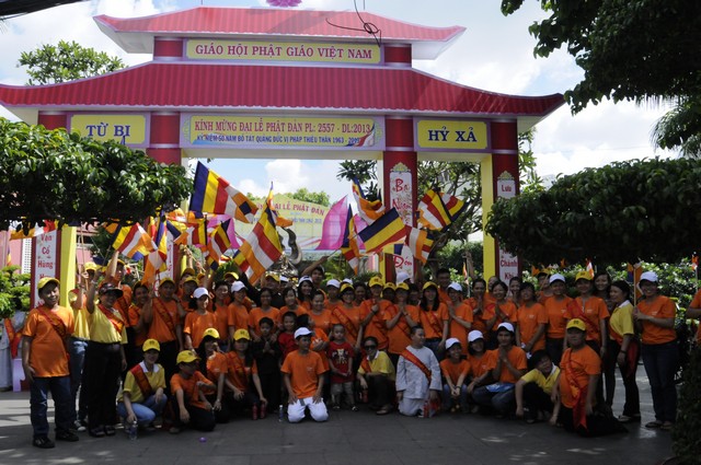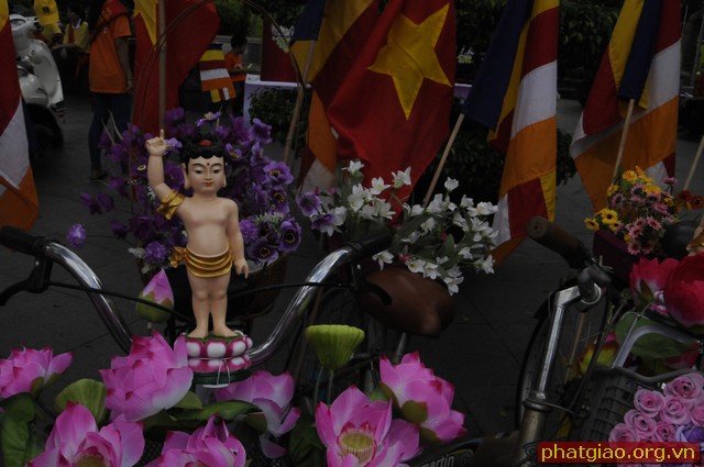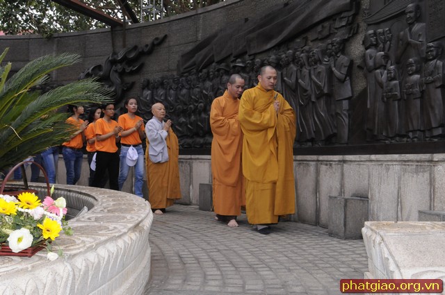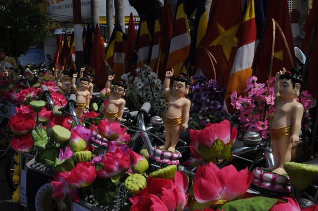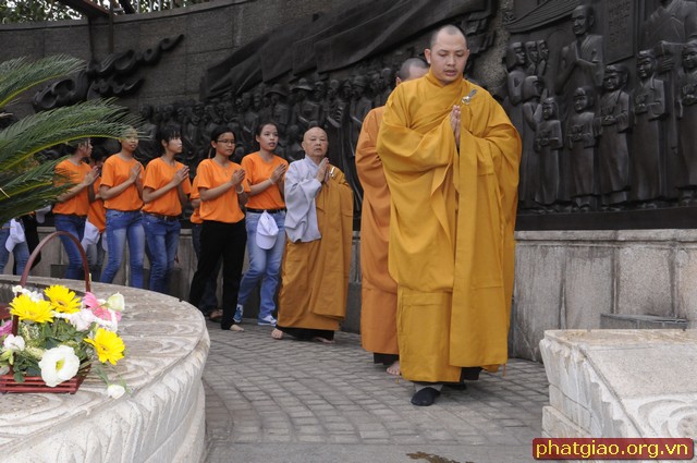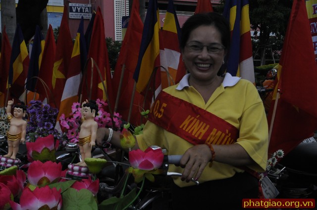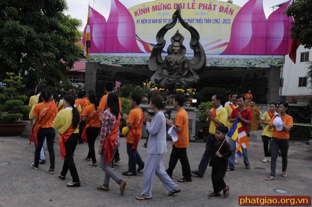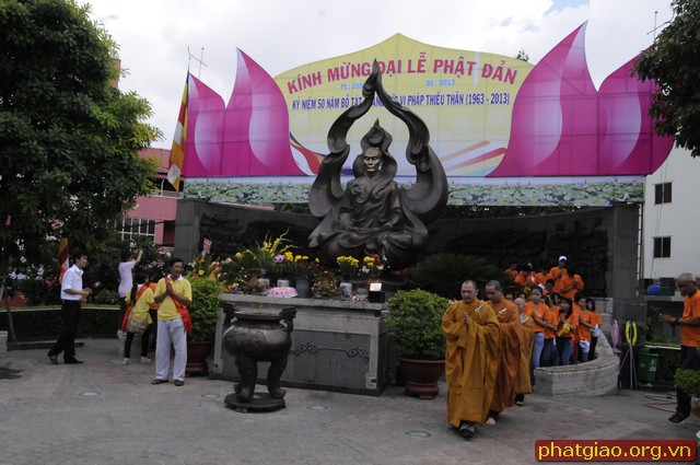 Đoàn xe xuất phát từ Chùa Phước Hải qua các Chùa Trấn Quốc, Giác Tâm, Tượng Đài Bồ Tát Thích Quảng Đức, chùa Vĩnh Nghiêm… và kết thúc tại Chùa Phổ Quang. Trong hành trình đoàn dừng lại làm lễ tưởng niệm trước tượng đài Bồ Tát Thiêu Thân Thích Quảng Đức. Một vị chân tu đã hóa thân phản đối sự đàn áp của chính quyền Ngô Đình Diệm với Phật Giáo Miền Nam giai đoạn 1963. Ngày 18/09/2010 Tượng đài Bồ Tát Thích Quảng Đức được UBND Thành Phố Hồ Chí Minh và Thành Hội Phật Giáo TP Hồ Chí Minh tổ chức lễ khánh thành tại ngã tư Cách Mạng Tháng 8 và Nguyễn Đình Chiểu, chính nơi Ngài đã ghi lại dấu ấn lịch sử. Sau đây là một số hình ảnh của đoàn diễu hành trước Tượng Đài sáng ngày 19/05/2013.
