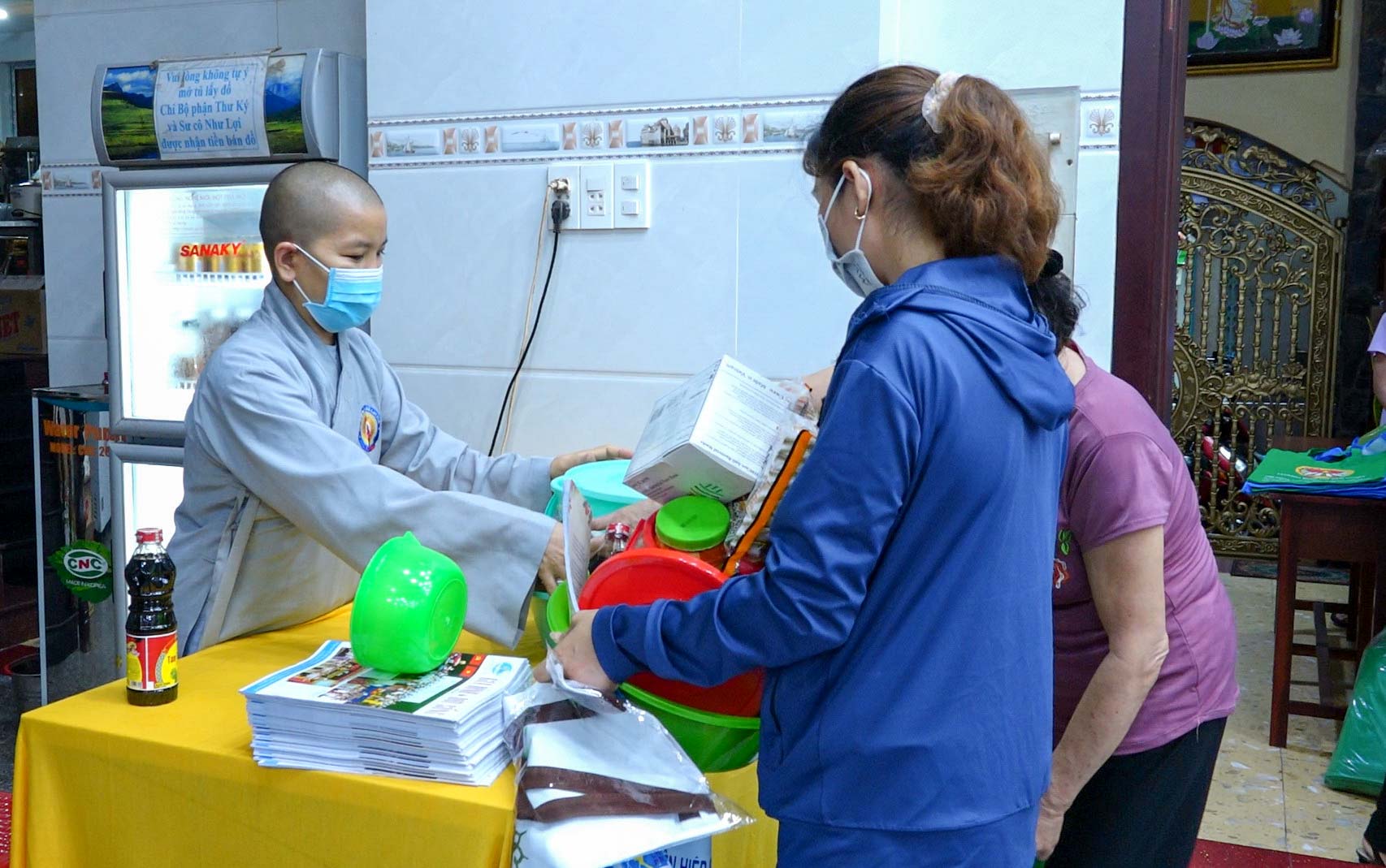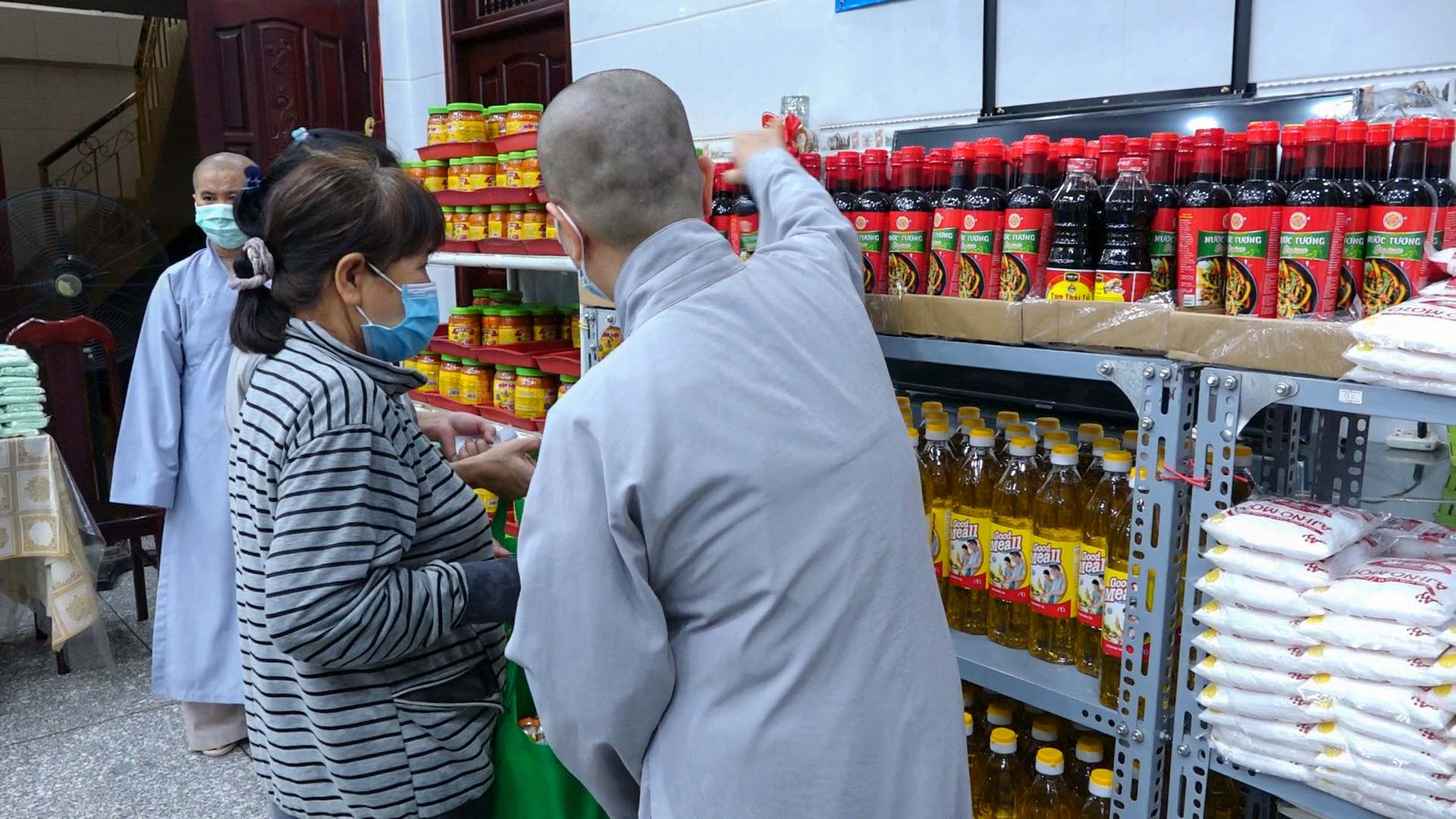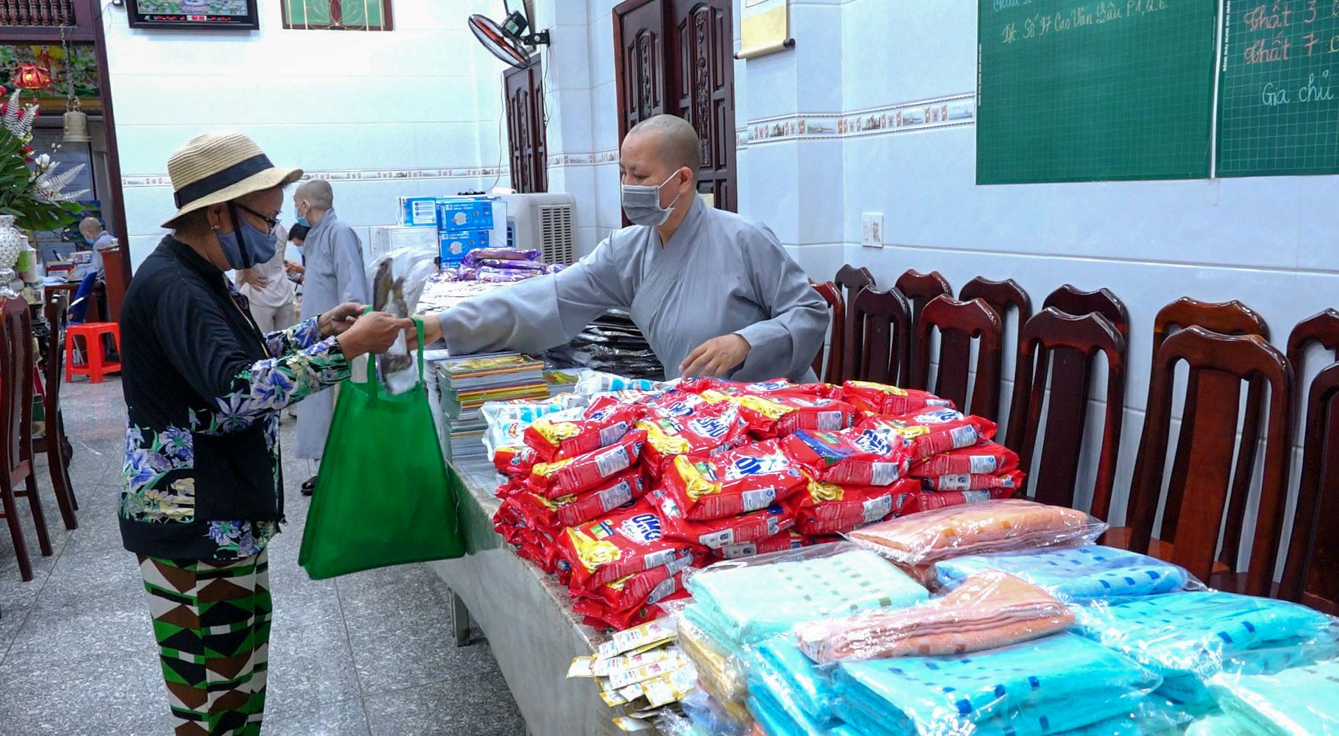 Được biết, gian hàng với đa dạng các nhu yếu phẩm, như: gạo, mì, đường,… các vật dụng: khẩu trang, khăn, tập… Chùa Bồ Đề Lan Nhã đã trao 200 phiếu mua hàng cho bà con, mỗi phiếu được sử dụng để mua 17 món hàng khác loại với giá 0 đồng và được tặng thêm một phong bì tiền mặt.