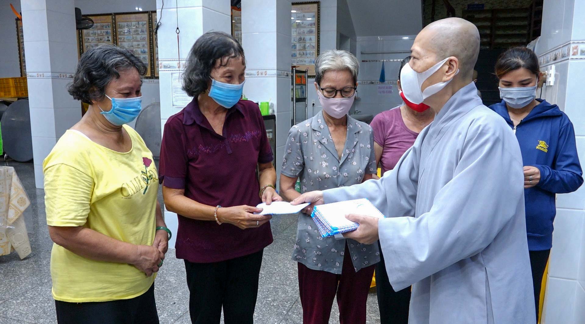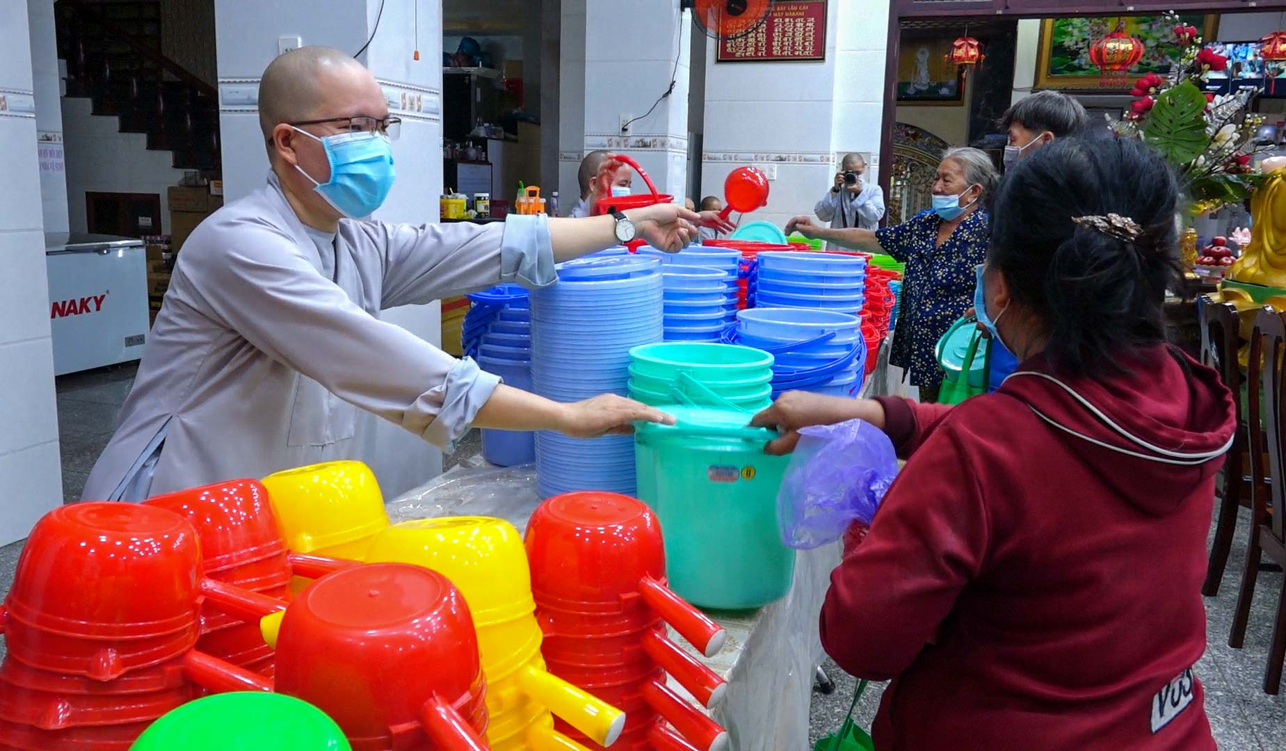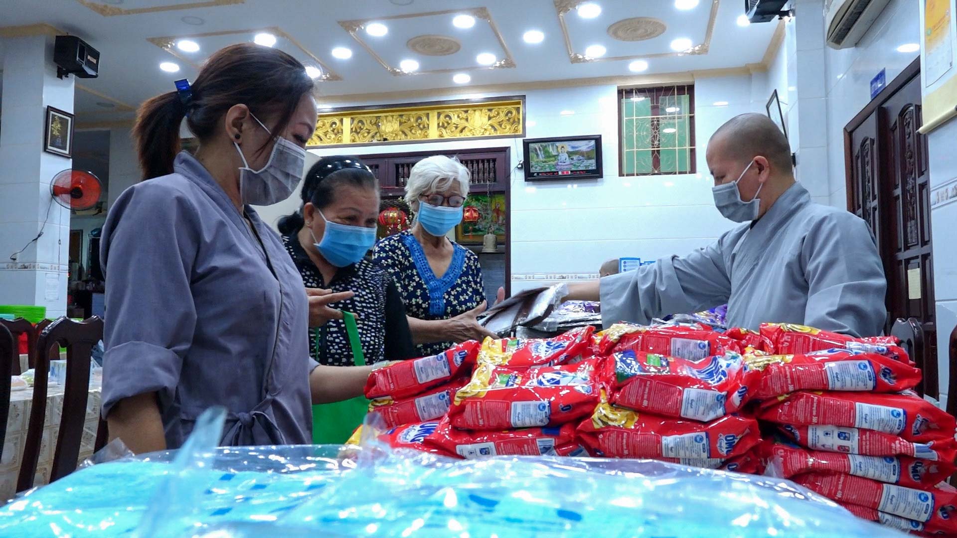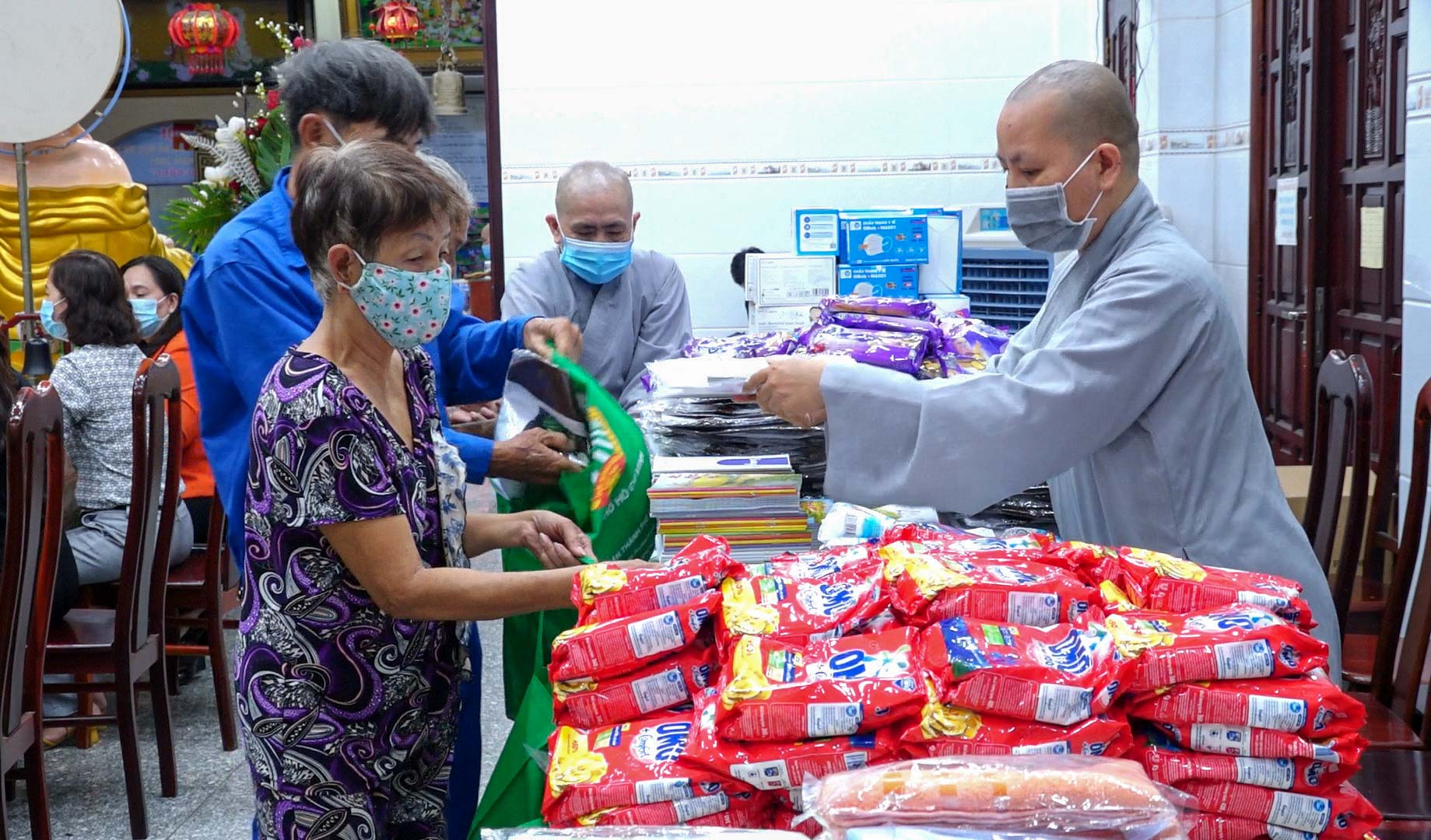 Được biết, gian hàng với đa dạng các nhu yếu phẩm, như: gạo, mì, đường,… các vật dụng: khẩu trang, khăn, tập… Chùa Bồ Đề Lan Nhã đã trao 200 phiếu mua hàng cho bà con, mỗi phiếu được sử dụng để mua 17 món hàng khác loại với giá 0 đồng và được tặng thêm một phong bì tiền mặt.