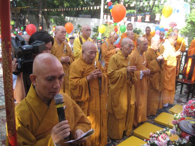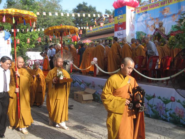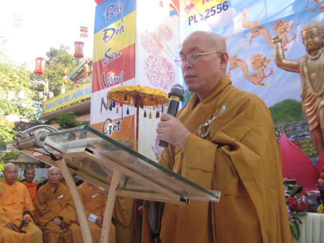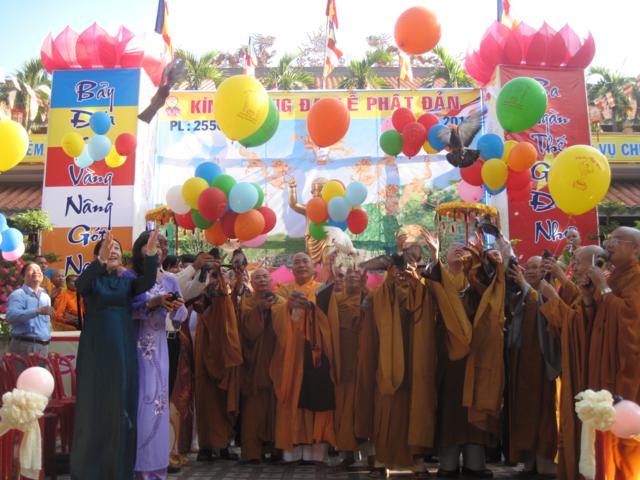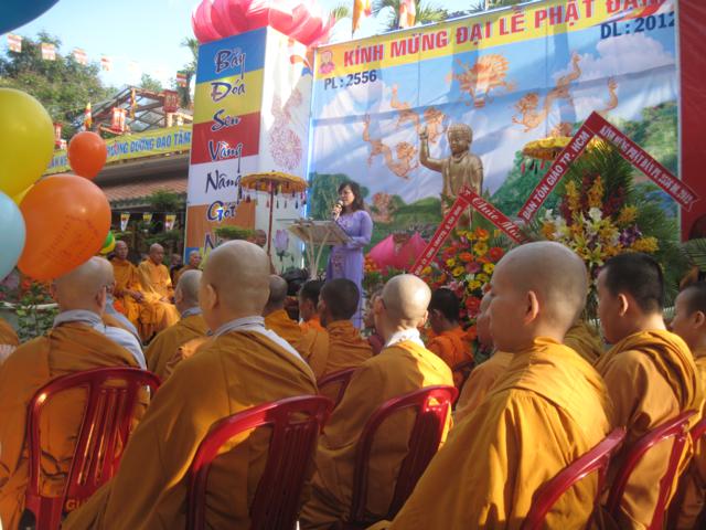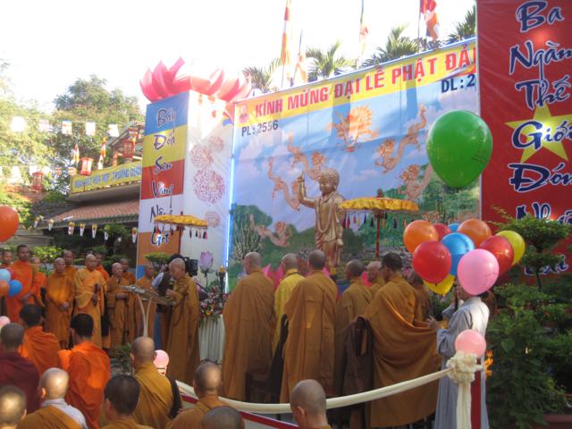 Theo chương trình đại lễ, sau phần cung thỉnh chư Tôn đức giáo phẩm Tăng Ni, quan khách quang lâm lễ đài là phần tuyên bố lý do, thông qua chương trình, giới thiệu thành phần tham dự. Hoà thượng Thích Thiện Đức – UV HĐTS đọc Thông điệp Phật đản của Đức Pháp chủ GHPGVN, Thượng toạ Thích Đạt Đức – Chánh đại diện Phật giáo Q.Tân Bình đọc Diễn văn Đại lễ Phật đản PL 2556 của Chủ tịch HĐTS GHPVN. Tiếp đến là các phần phát biểu của chính quyền và nghi thức cúng dường Phật đản, cử hành khoá lễ Nam truyền – Bắc truyền, nhập Từ bi quán, dâng hoa, thả chim bồ câu và bong bóng cầu nguyện hoà bình, cảm tạ của Ban tổ chức.