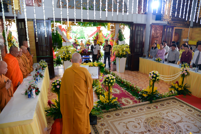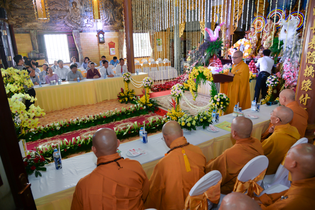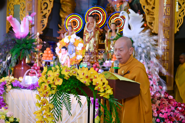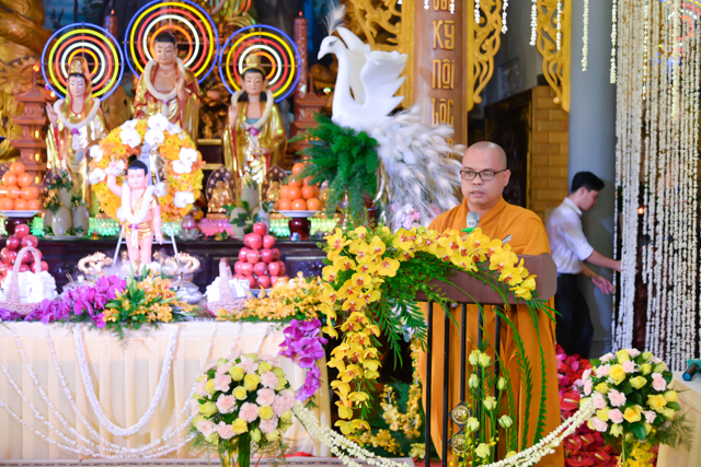 Tại buổi lễ, Chư tôn đức giáo phẩm, quan khách chính quyền, Phật tử trang nghiêm cử 3 hồi chuông trống Bát nhã cung rước Phật Đản Sanh, tiếp tục lắng nghe thông điệp Phật Đản của Đức Pháp Chủ GHPGVN do HT.Thích Thiện Đức tuyên đọc.