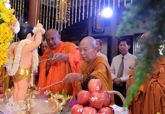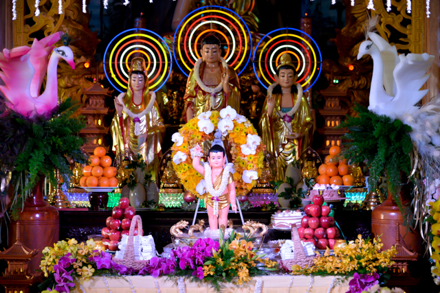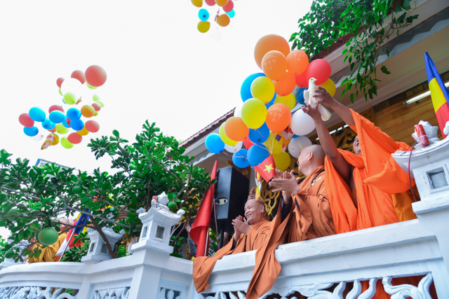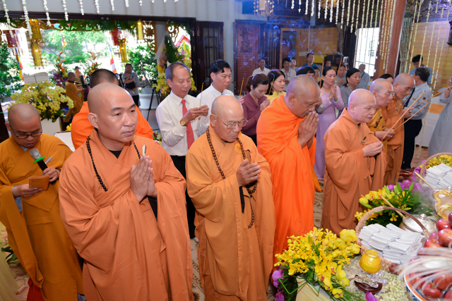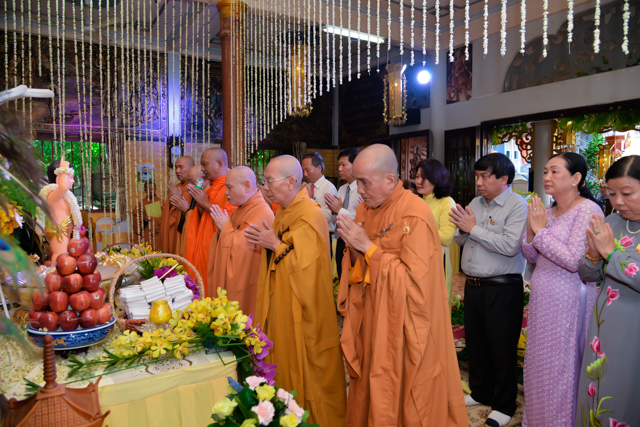 Sau đó, toàn thể chư tôn đức cùng các vị khách quý dâng hương lễ Phật, thực hiện nghi thức tụng kinh kính mừng Khánh đản. Buổi lễ kết thúc với nghi thức tắm Phật và thả chim bồ câu, bong bóng cầu nguyện hòa bình.