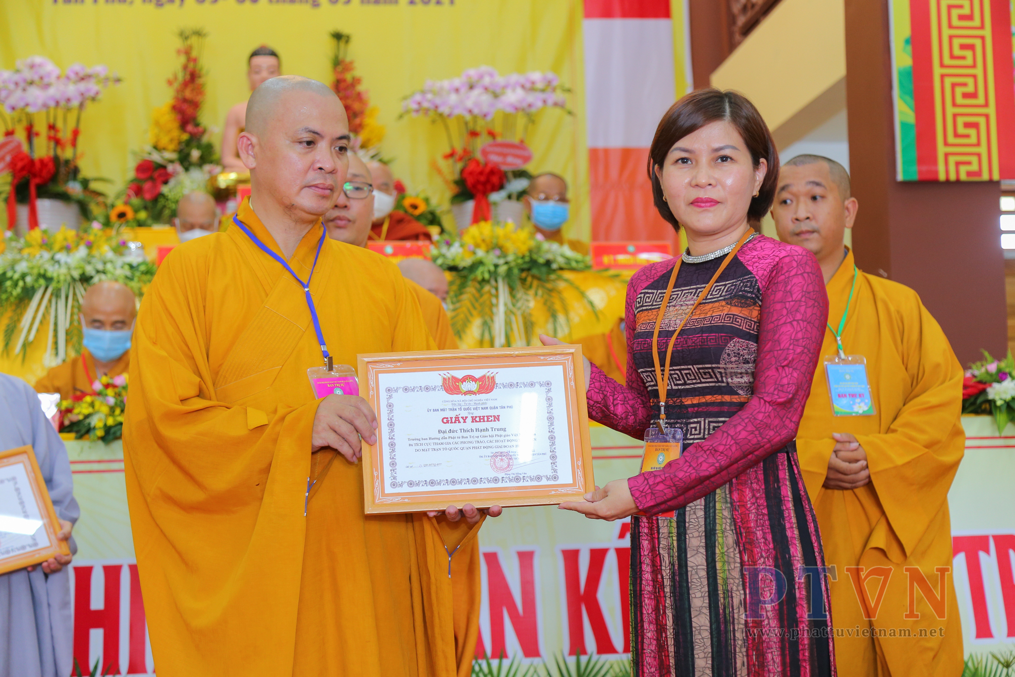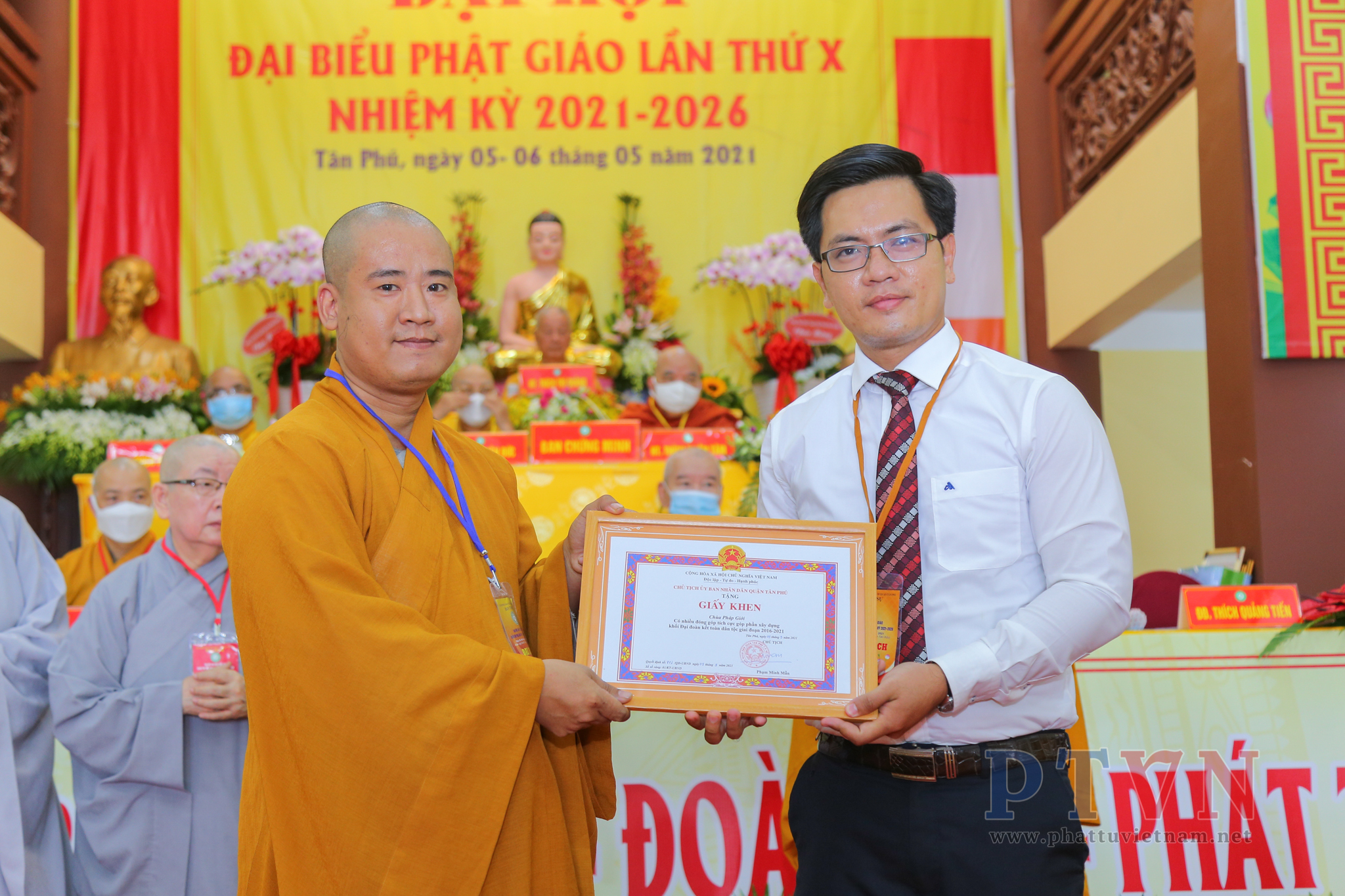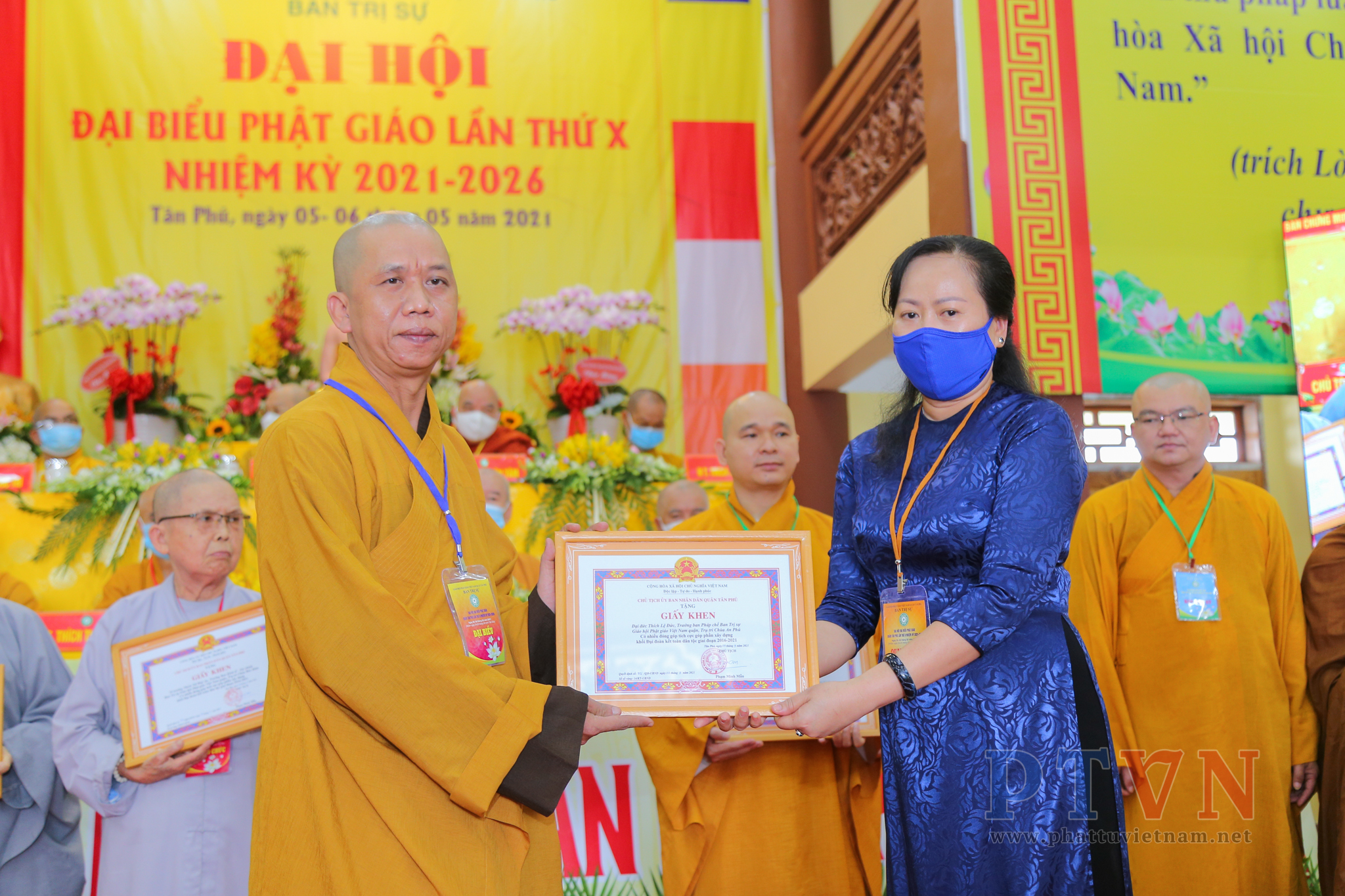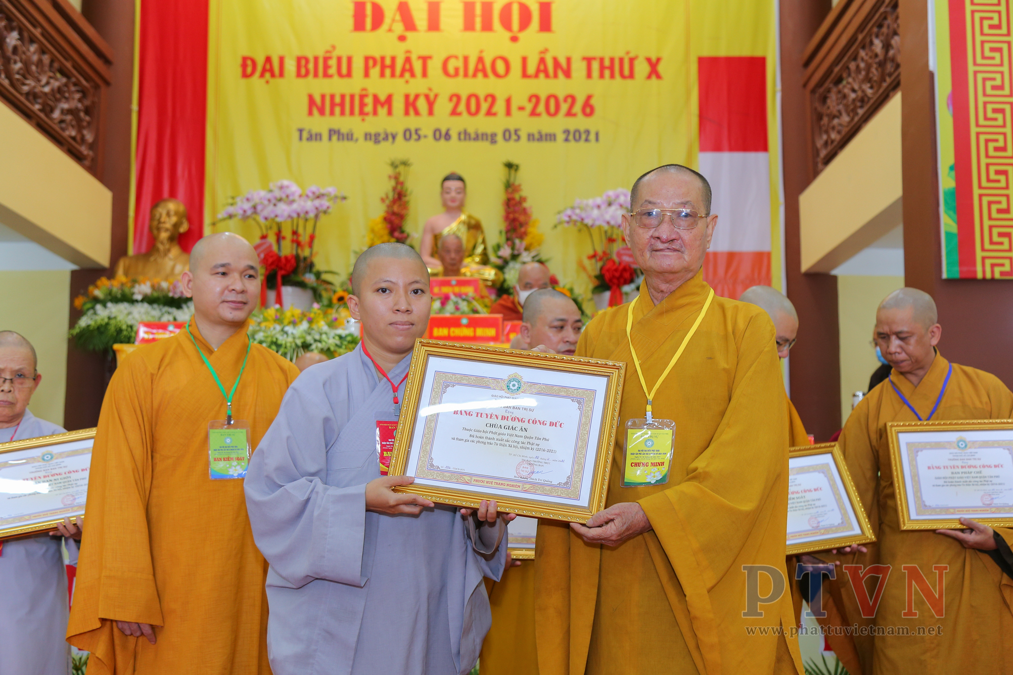 Đại diện chính quyền địa phương, bà Đặng Thị Hồng Vân – Chủ tịch UB MTTQVN quận Tân Phú trân trọng ghi nhận các thành tựu Phật sự mà GHGPVN quận Tân Phú đã đạt được trong nhiệm kỳ IX (2016 – 2021).