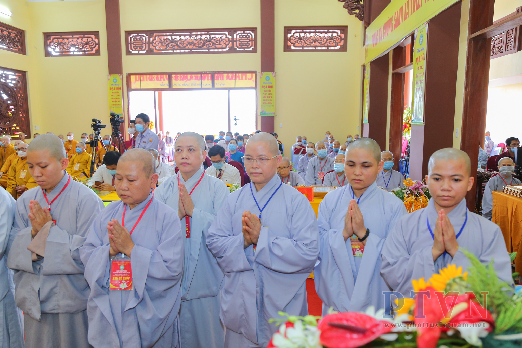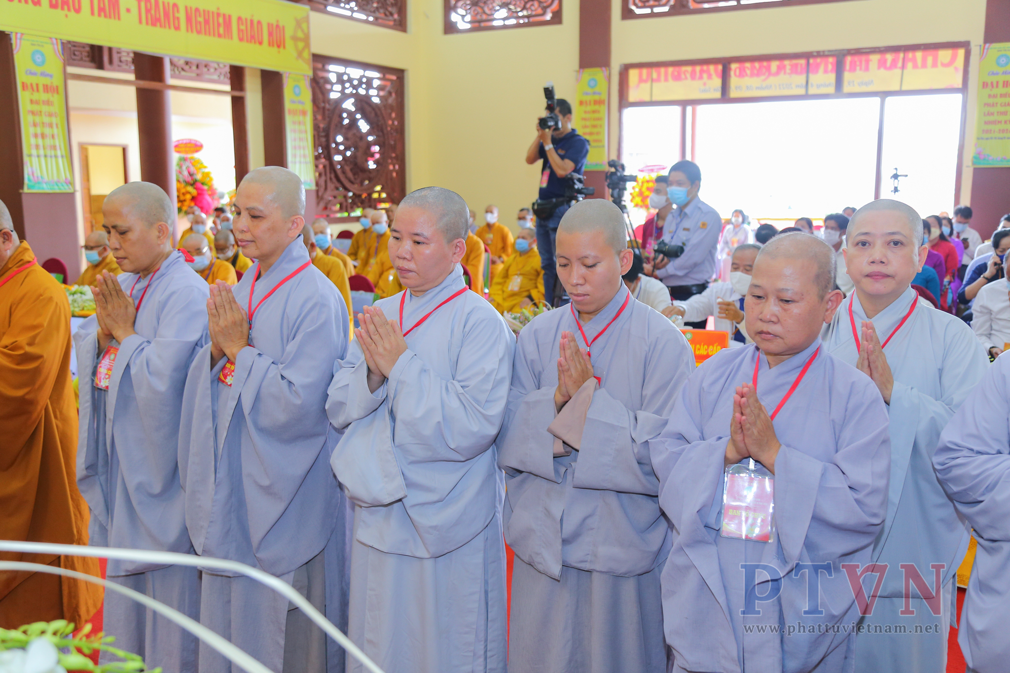 Mở đầu buổi lễ, chư tôn đức cùng toàn thể quý đại biểu tiến hành nghi thức chào quốc kỳ, đạo kỳ, phút mặc niệm tưởng niệm đến những bậc tiền bối hữu công, anh hùng liệt sỹ đã hy sinh cho dân tộc và đạo pháp.