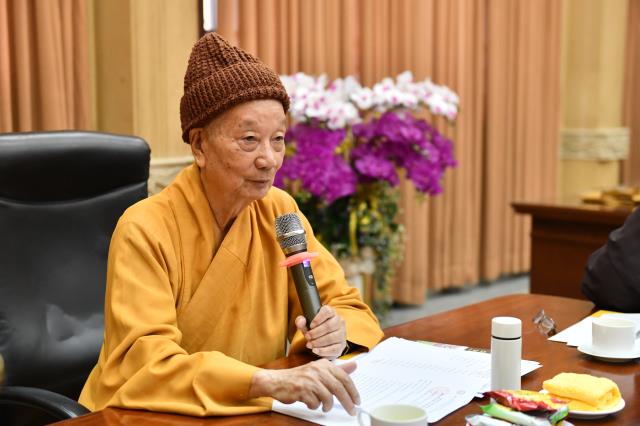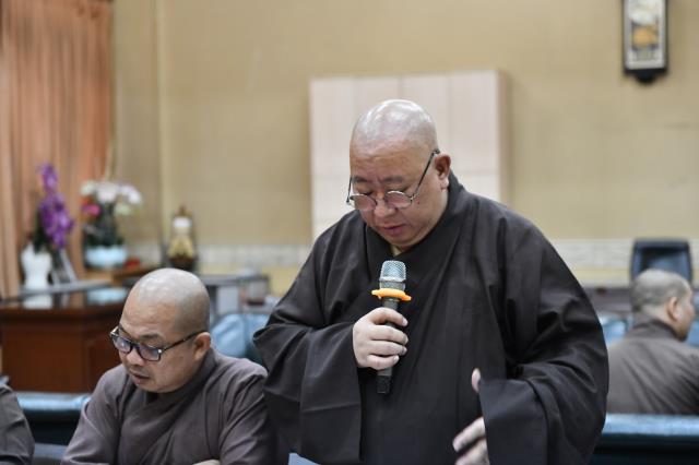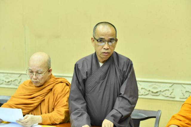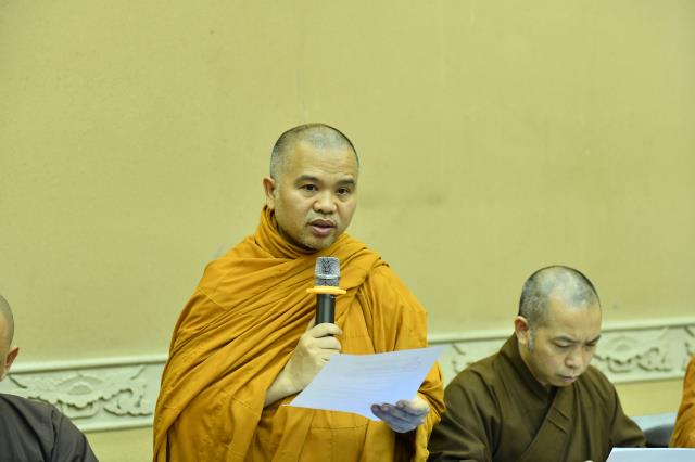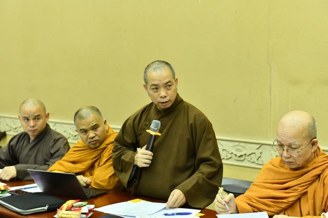 Phụ trách chính cho Hội thảo chào mừng 40 năm thành lập GHPGVN, TT. Thích Nhật Từ – Phó Viện trưởng Thường trực báo cáo công tác chuẩn bị hiện tại lên chư Tôn đức.