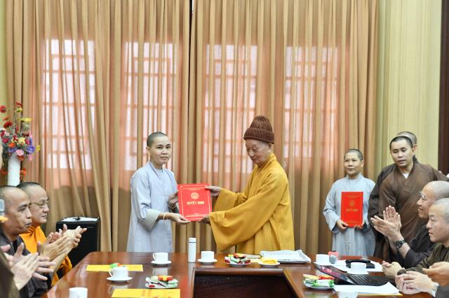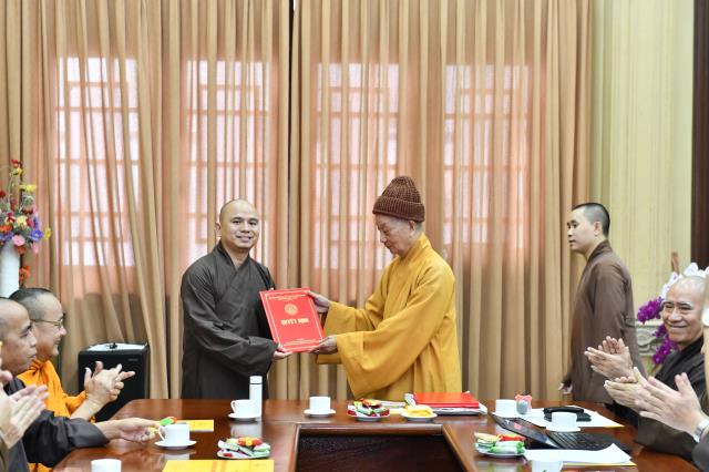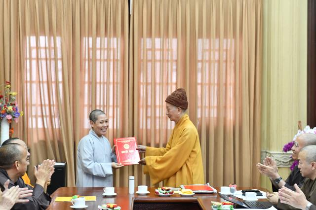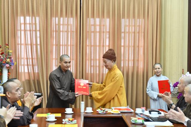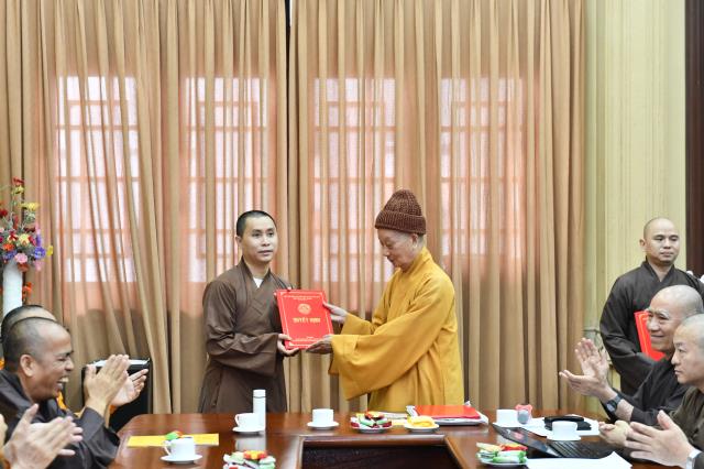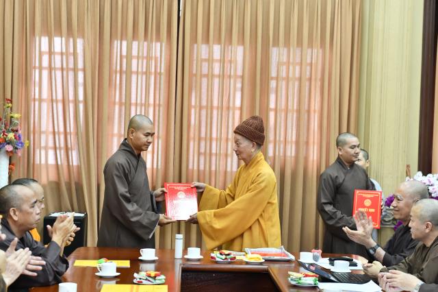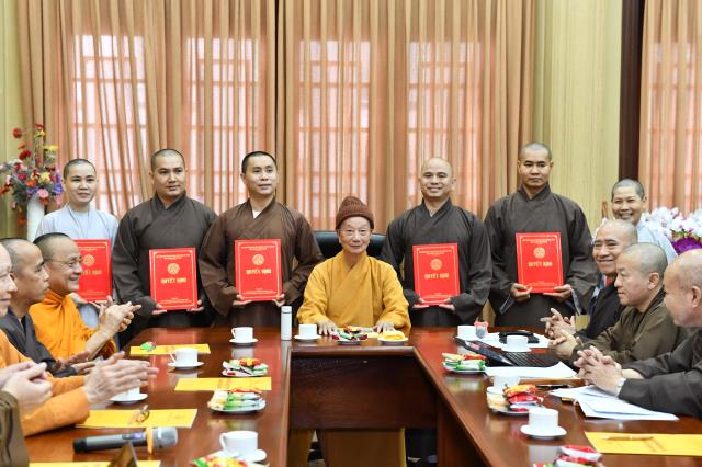 Dịp này, lãnh đạo các phòng ban cũng xin ý kiến chỉ đạo về việc bổ sung nhân sự mới, nhằm đáp ứng tiến độ hoàn thành công việc của Học viện. Tại phiên họp sáng nay, ĐĐ. Thích Lệ Ngôn được bổ nhiệm làm Trưởng phòng Hành chính; NS. TN. Chánh Tuệ làm Phó Phòng Hành chính; ĐĐ. Thích Giác Thọ được bổ nhiệm làm Trưởng Phòng Công tác sinh viên; Phòng Sau Đại học bổ sung thêm ĐĐ. Thích Quảng Lạc – Chuyên viên phụ trách hệ Thạc sĩ, ĐĐ. Thích Minh Anh – Chuyên viên phụ trách hệ Tiến sĩ và SC. TN. Thanh Hội – Chuyên viên phụ trách hành chánh tổng hợp.