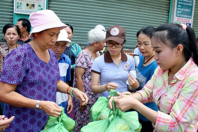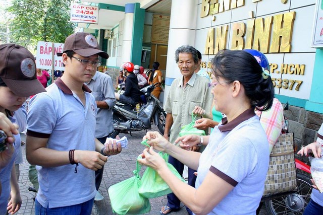 Tại Bệnh viện An Bình – số 146 An Bình, P.7, Quận 5, Tp.Hồ Chí Minh và Bệnh viện Nguyễn Tri Phương – số 468 Nguyễn Trãi, Phường 8, Quận 5, TP.HCM (Cổng Nguyễn Tri Phương) các Phật tử trẻ đã cùng nhau tụng kinh Từ Tâm Phúc Đức nhằm hồi hướng công đức cho các bệnh nhân sẽ nhanh chóng lành bệnh trở về chung vui với gia đình. Sau đó Hội 14 Chữ cũng mời các bạn trẻ dùng cơm tại Chùa nhằm tăng thêm tình đoàn kết yêu thương với nhau.